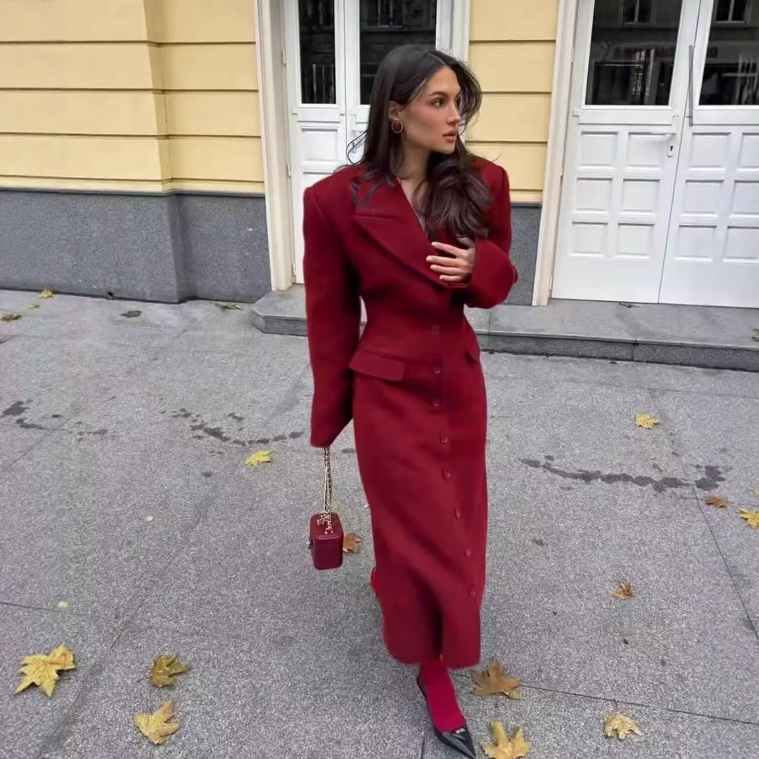 Solid Color, Waist shaping, Lapel, Shoulder Pads, Single Row With Multiple Deductions
