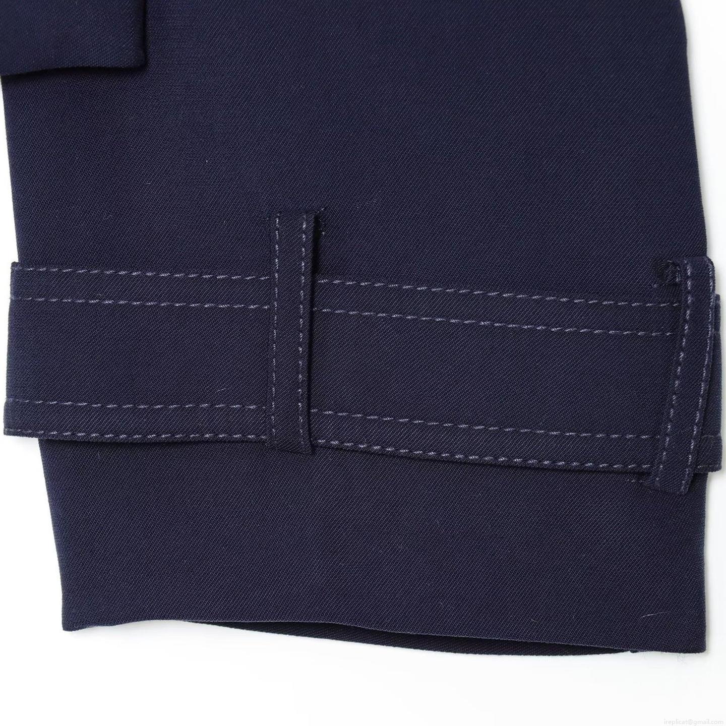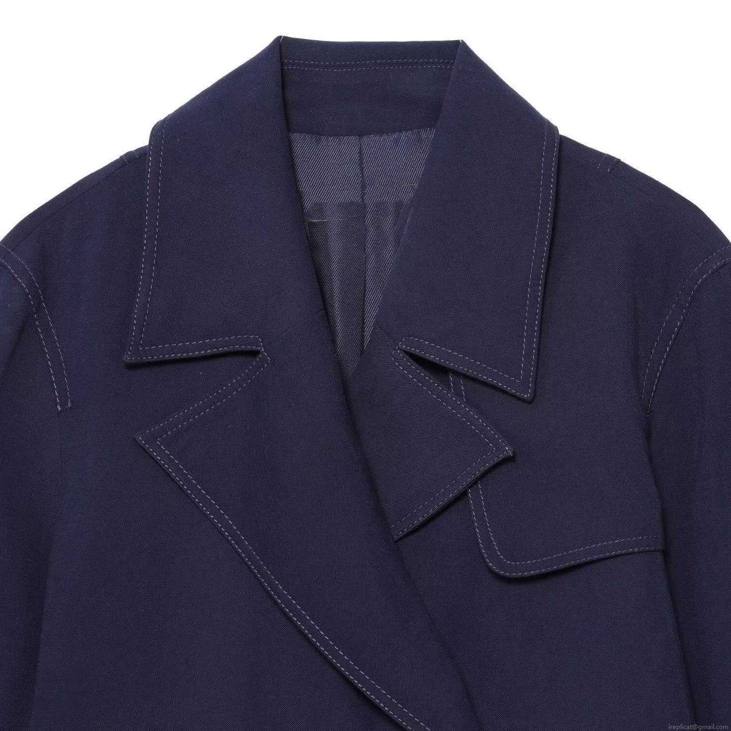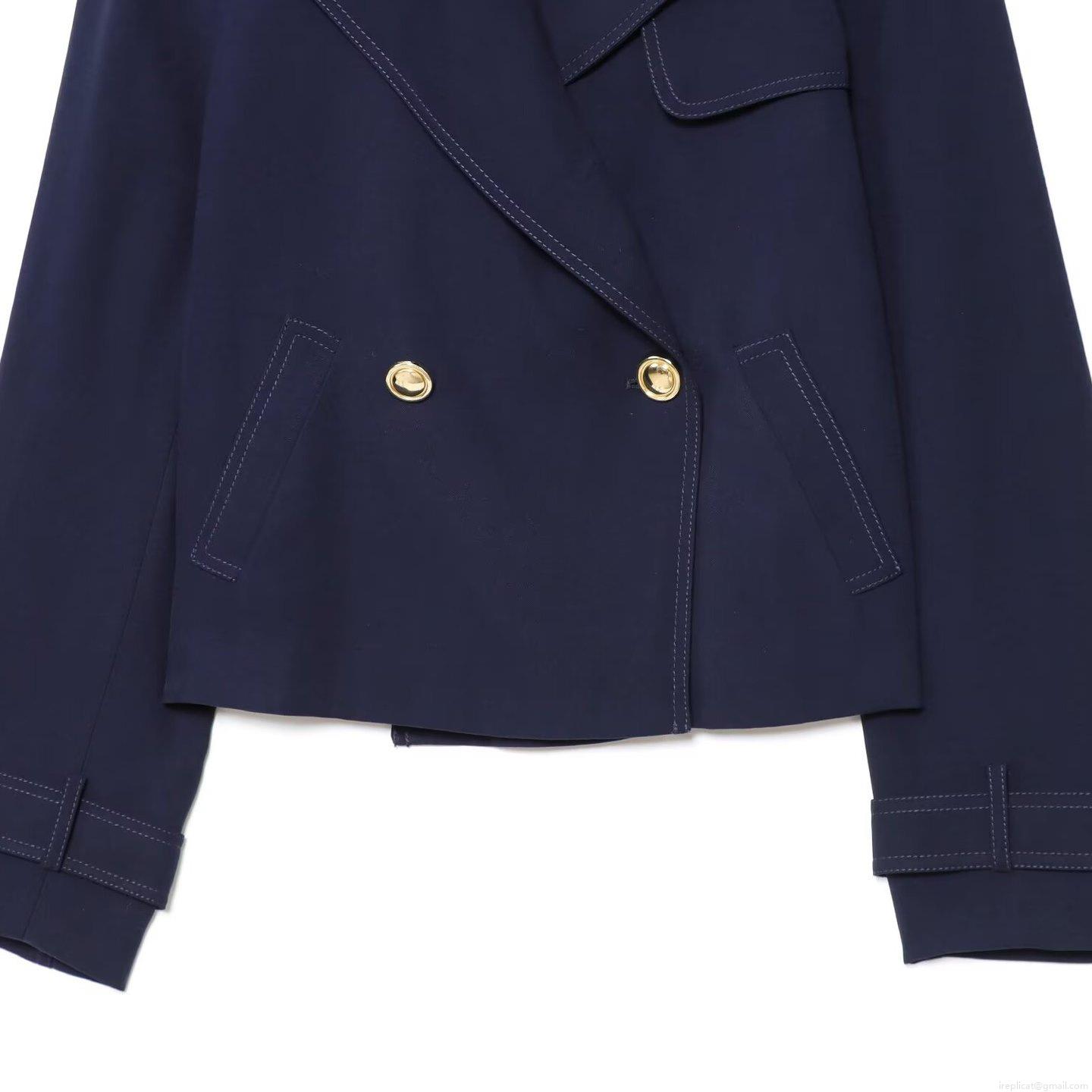 • Women Fashion Navy Blue Short Jacket Double Breasted Gold Buttons Topstitching Detail Twill Fabric Casual Commuter Blazer Coat For Women Autumn