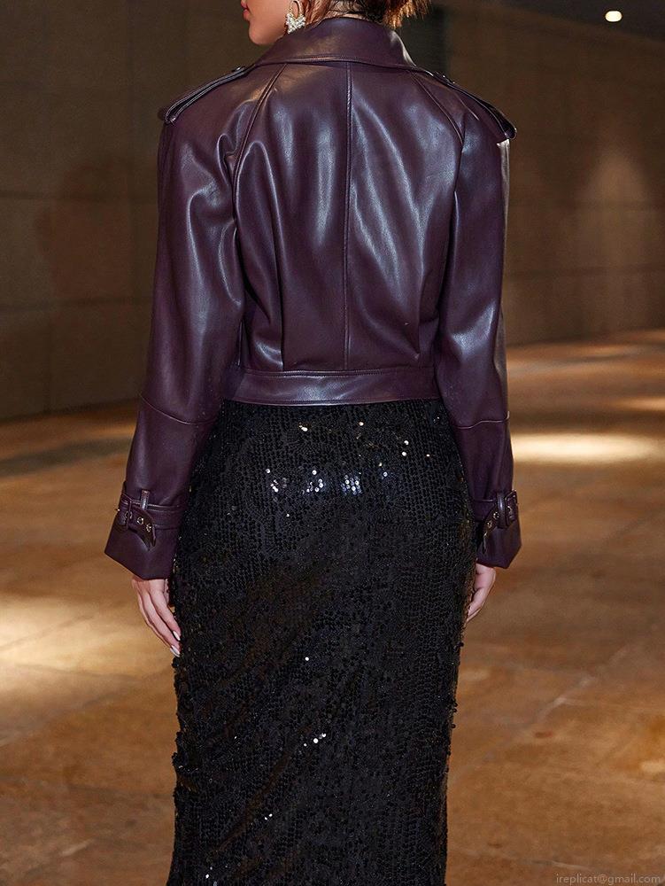 • Women Fashion PU Leather Jacket Loose Fit Lapel Long Sleeve Casual Moto Biker Crop Faux Leather Coat Outwear For Fall Winter