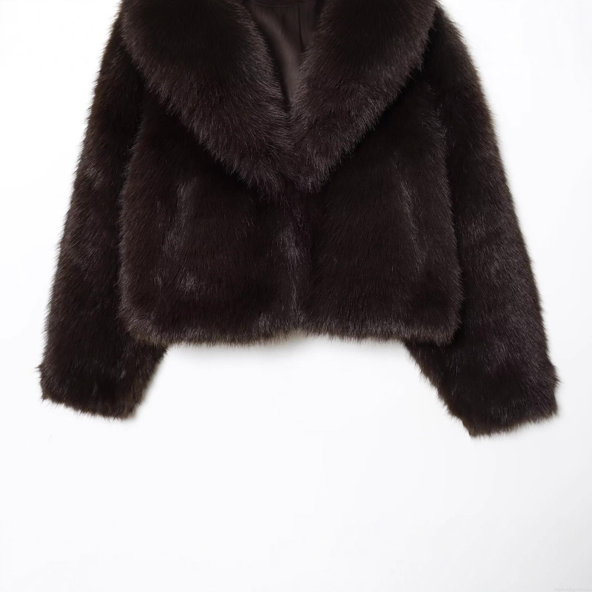 • Women Fashion Short Faux Fur Jacket Elegant Lapel Long Sleeve Plush Coat Warm Winter Outerwear For Ladies Coffee