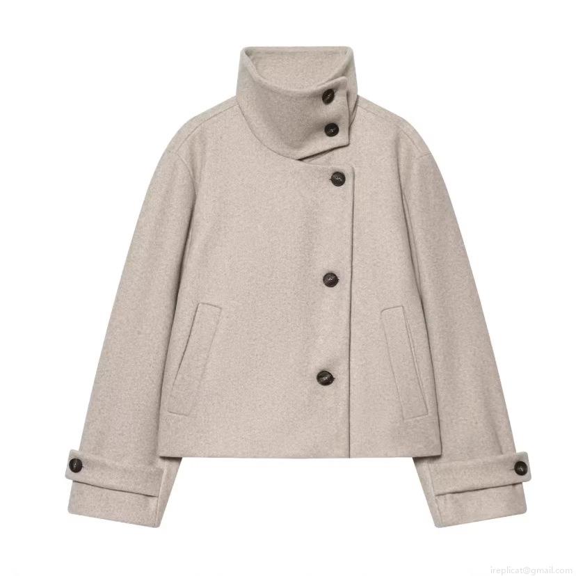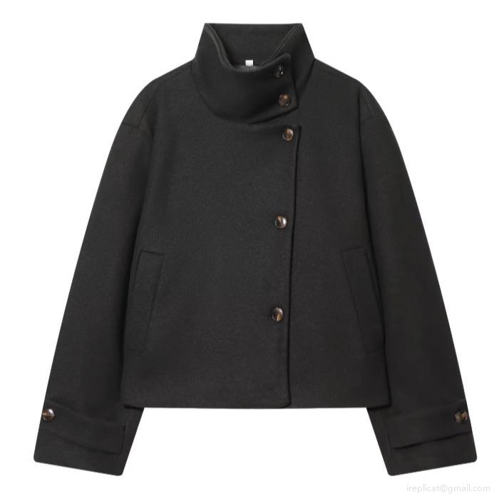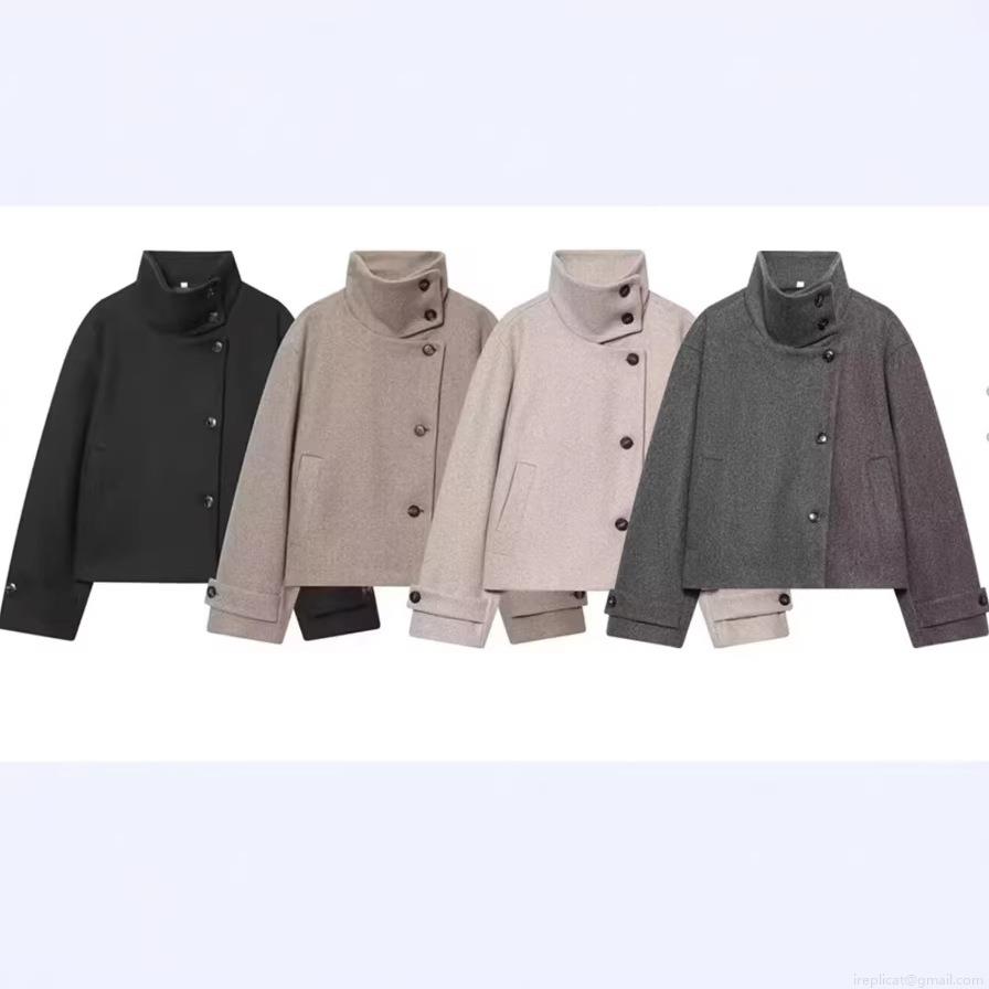 • Women Fashion Short Woolen Coat Elegant Stand Collar Asymmetric Button Jacket Casual Long Sleeve Solid Color Outerwear For Women Autumn Winter