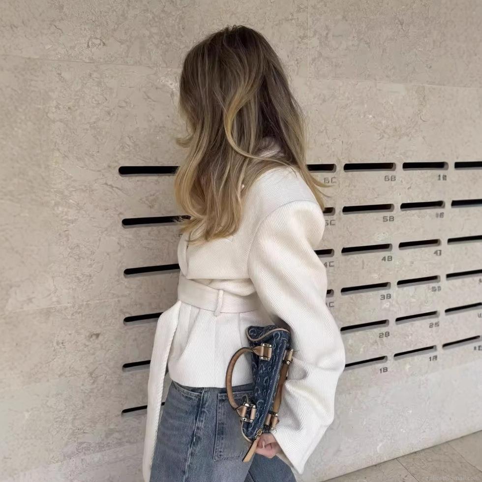 • Women Fashion Short Woolen Coat Elegant Tie-up Waist Blazer Jacket With Lapel Long Sleeve Solid Color Casual Outerwear For Spring Autumn Lady