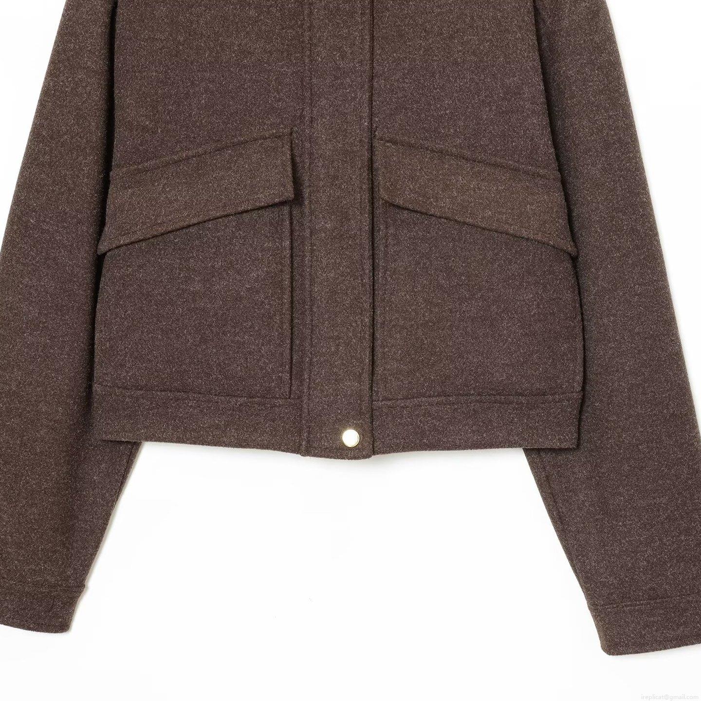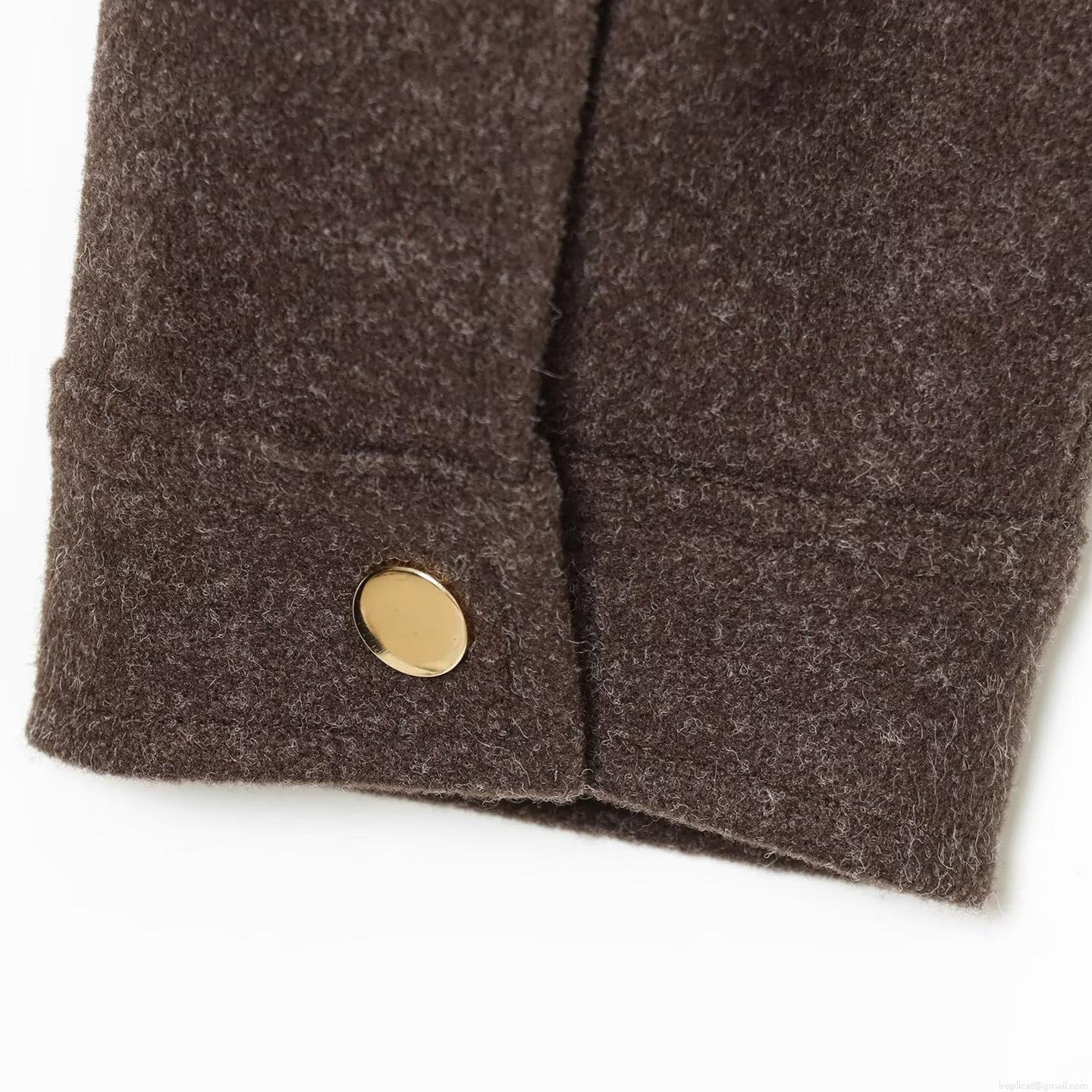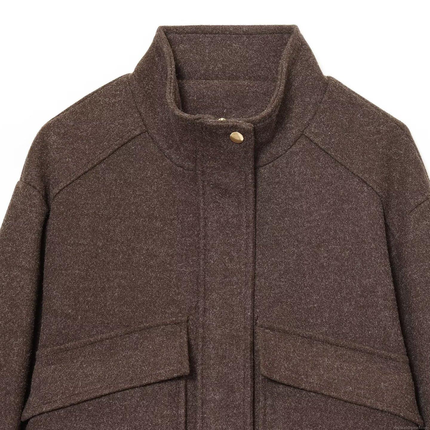 • Women Fashion Simple Stand Collar Short Jacket Coat Warm Woolen Texture Solid Color Outwear With Gold Buttons For Winter Daily Office Wear