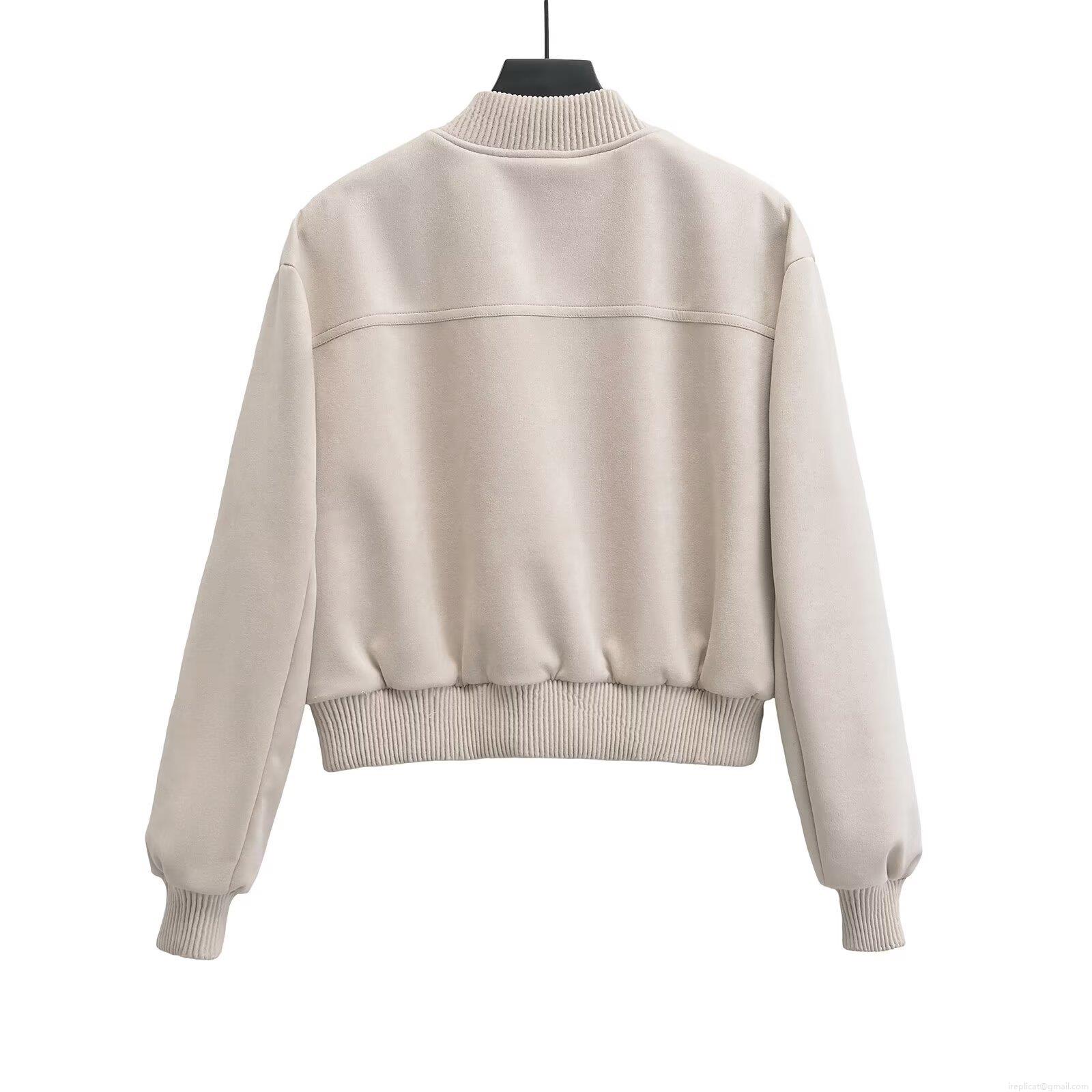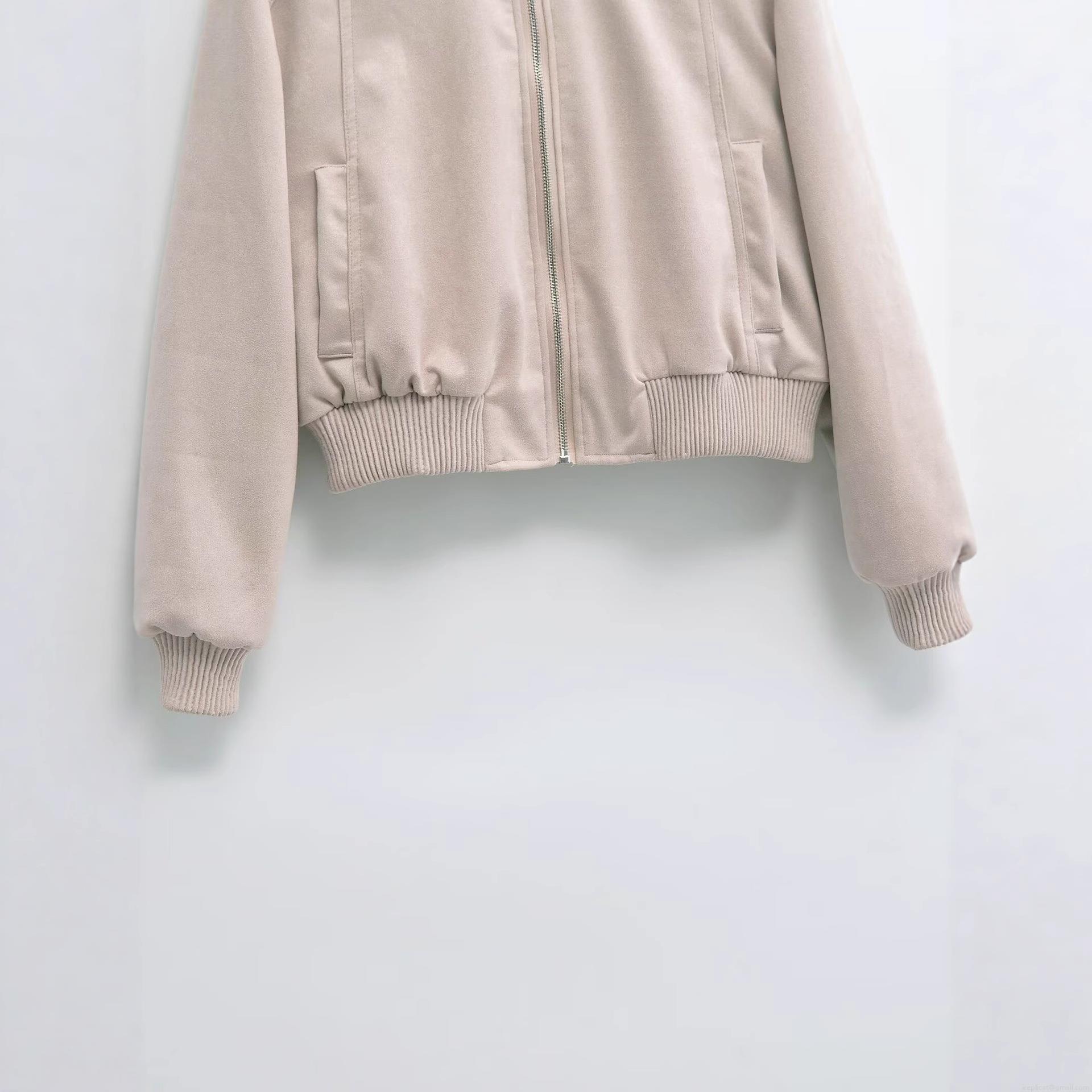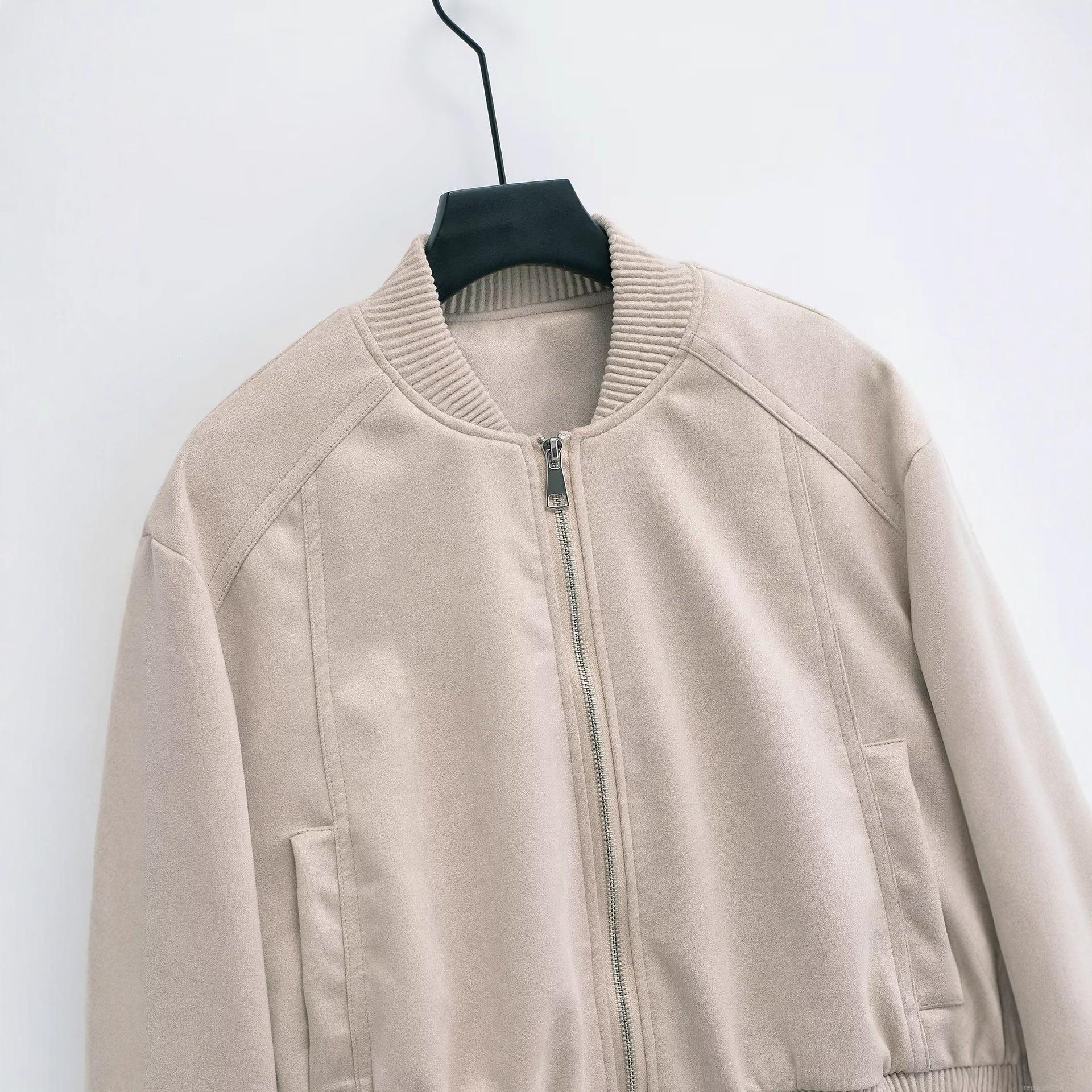 • Women Fashion Solid Color Bomber Jacket Soft Suede-like Fabric Loose Fit Zipper Up Outwear Long Sleeve Ribbed Trim Streetwear Casual Coat For Women