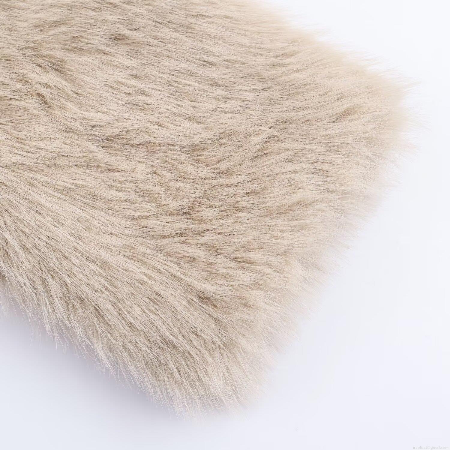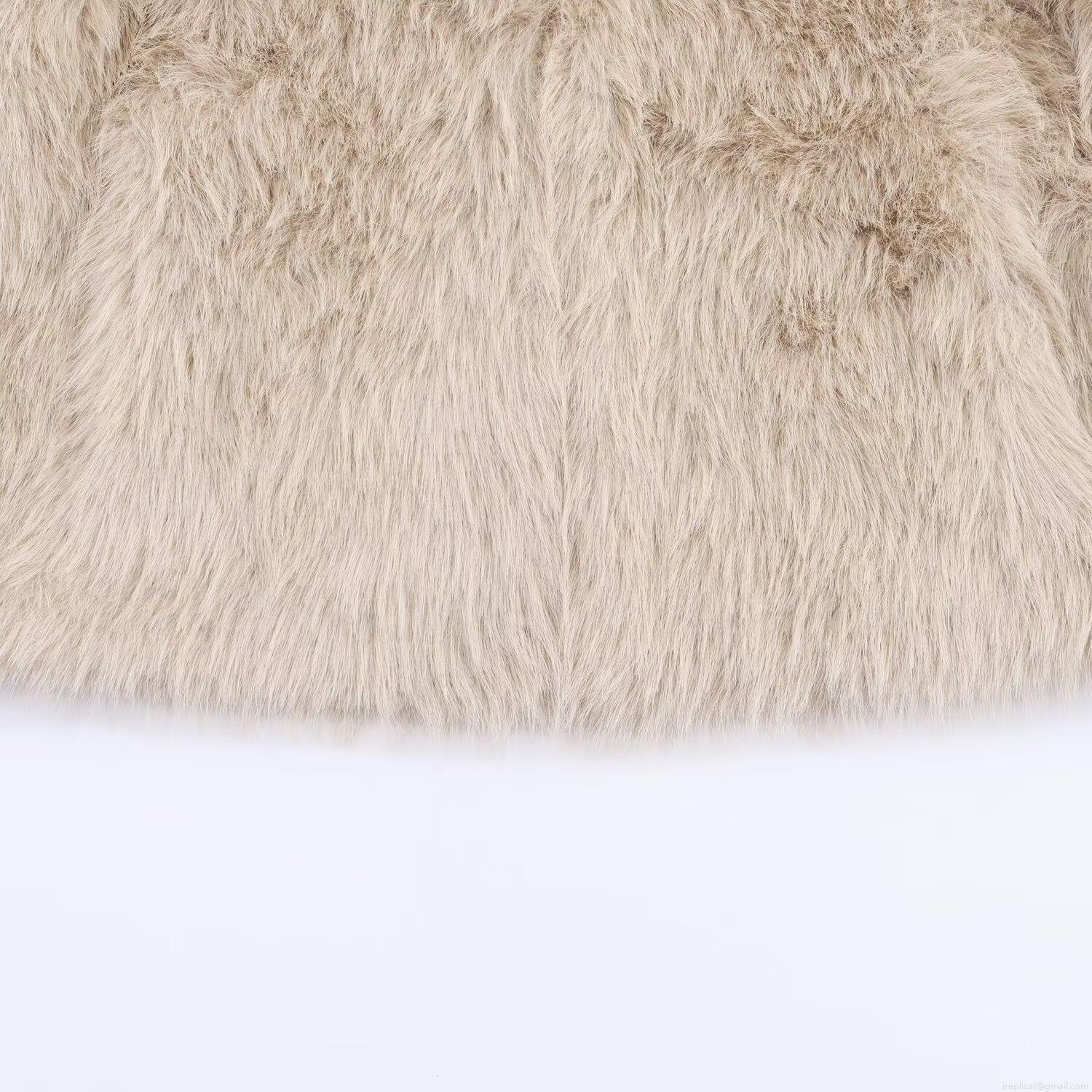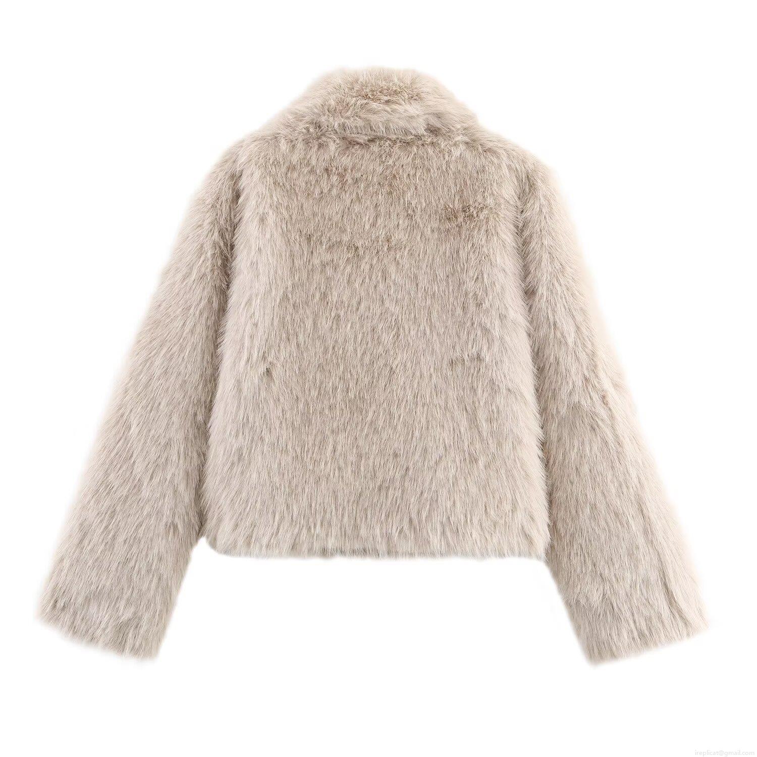 • Women Fashion Versatile Faux Fox Fur Jacket Elegant Beige Khaki Double Sided Plush Coat With Fur Collar Zipper Autumn Winter Outerwear