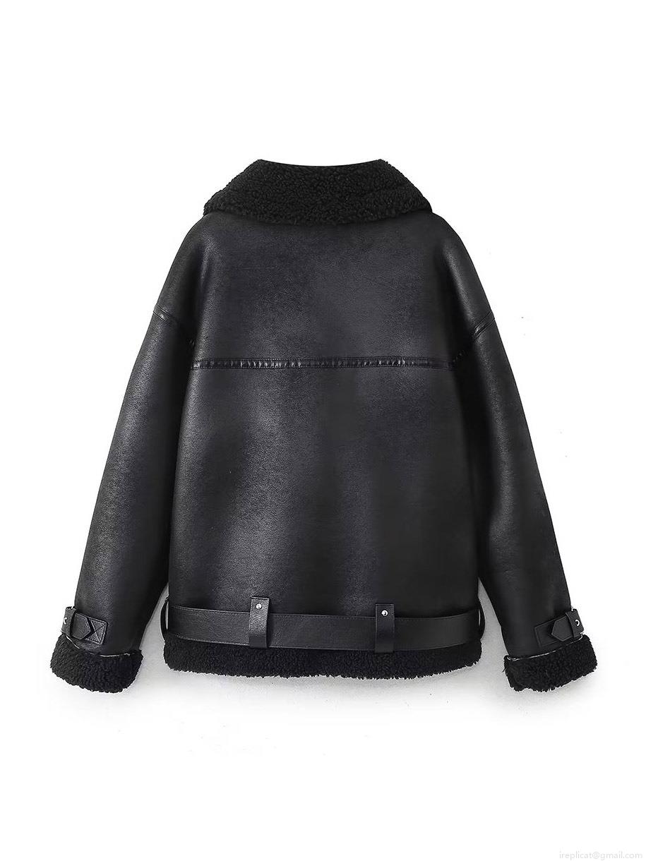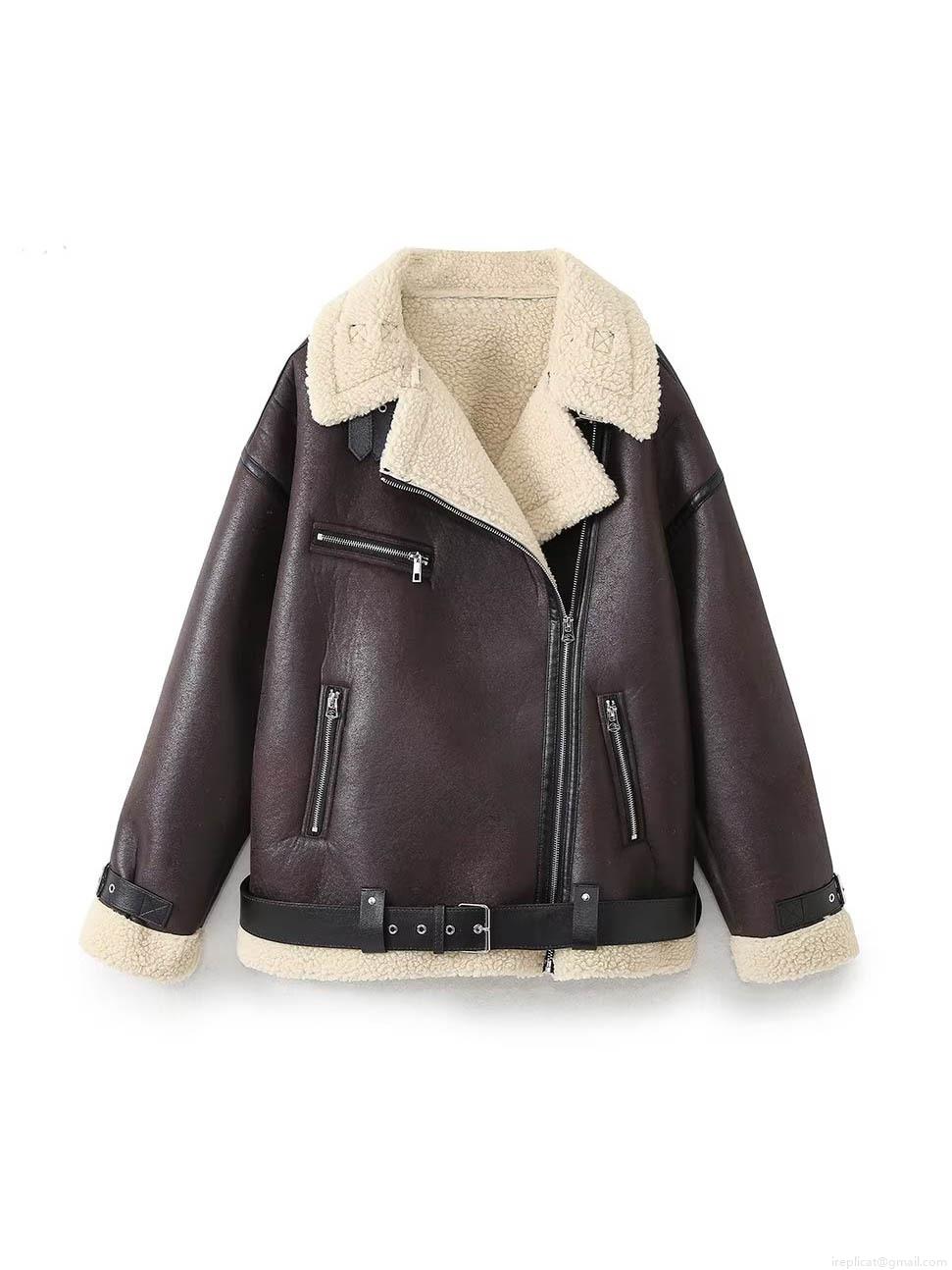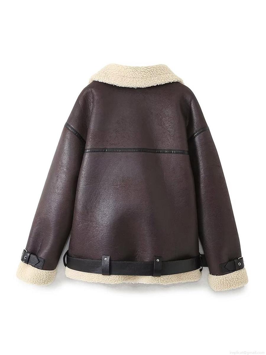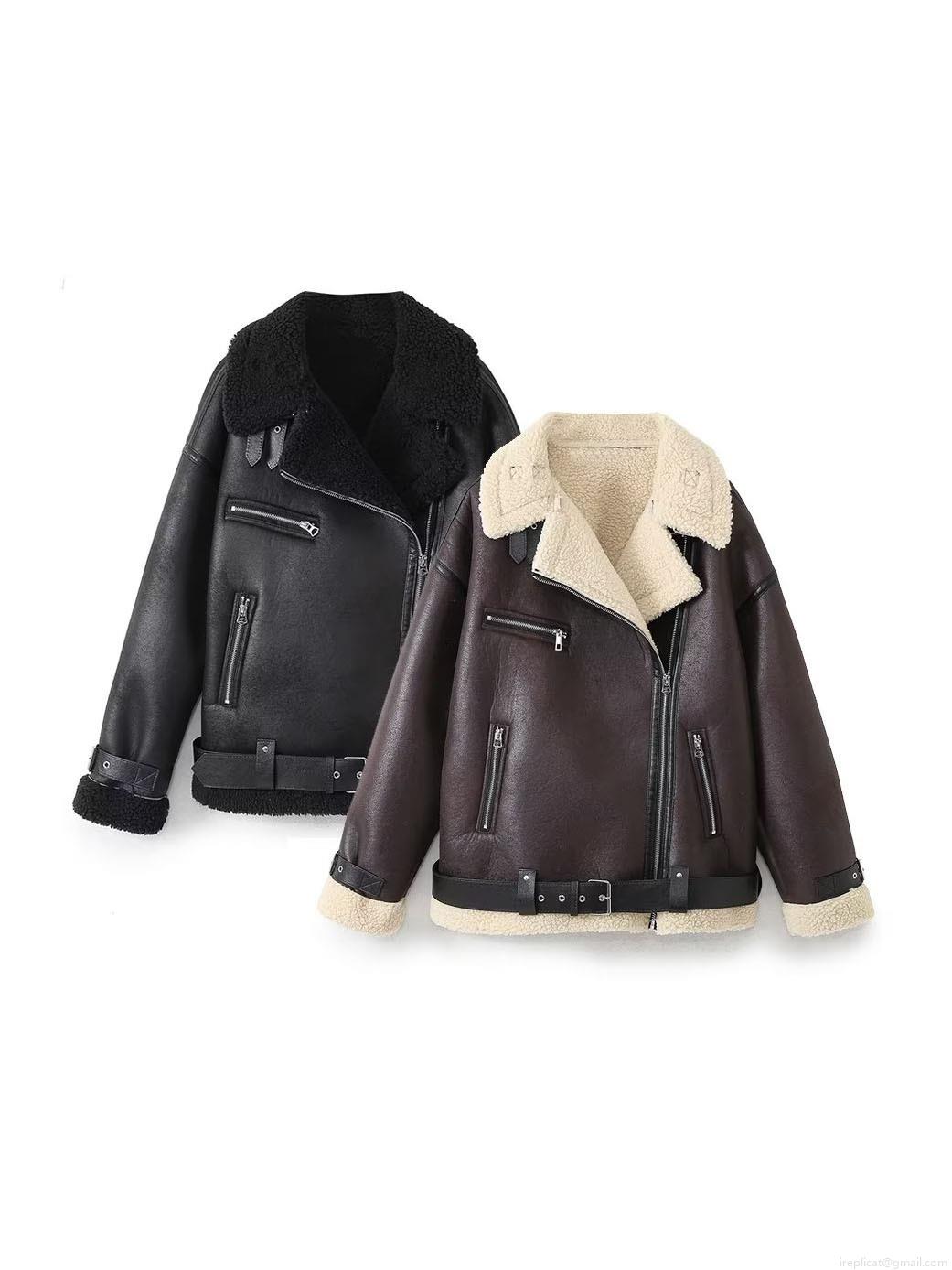 • Women Faux Leather Shearling Jacket With Belt Loose Fit Biker Jacket Warm Winter Outerwear Casual Streetwear Moto Coat For Women
