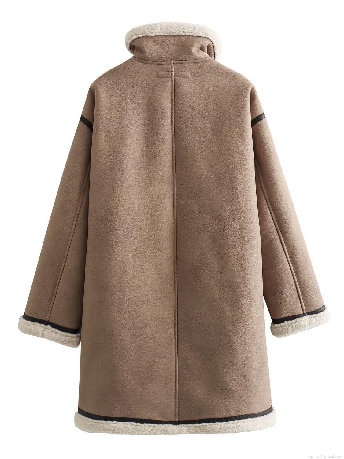 • Women Faux Shearling Long Coat Suede Patchwork Winter Warm Jacket With Stand Collar Buttons Streetwear Outerwear For Women Ladies