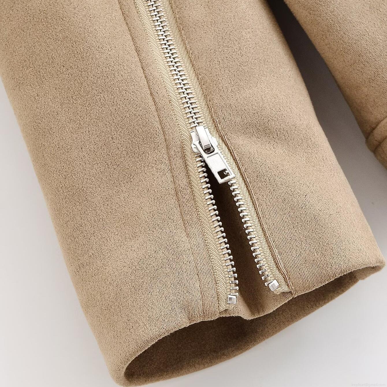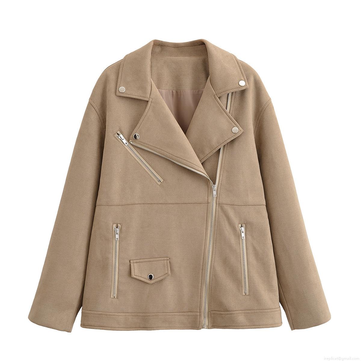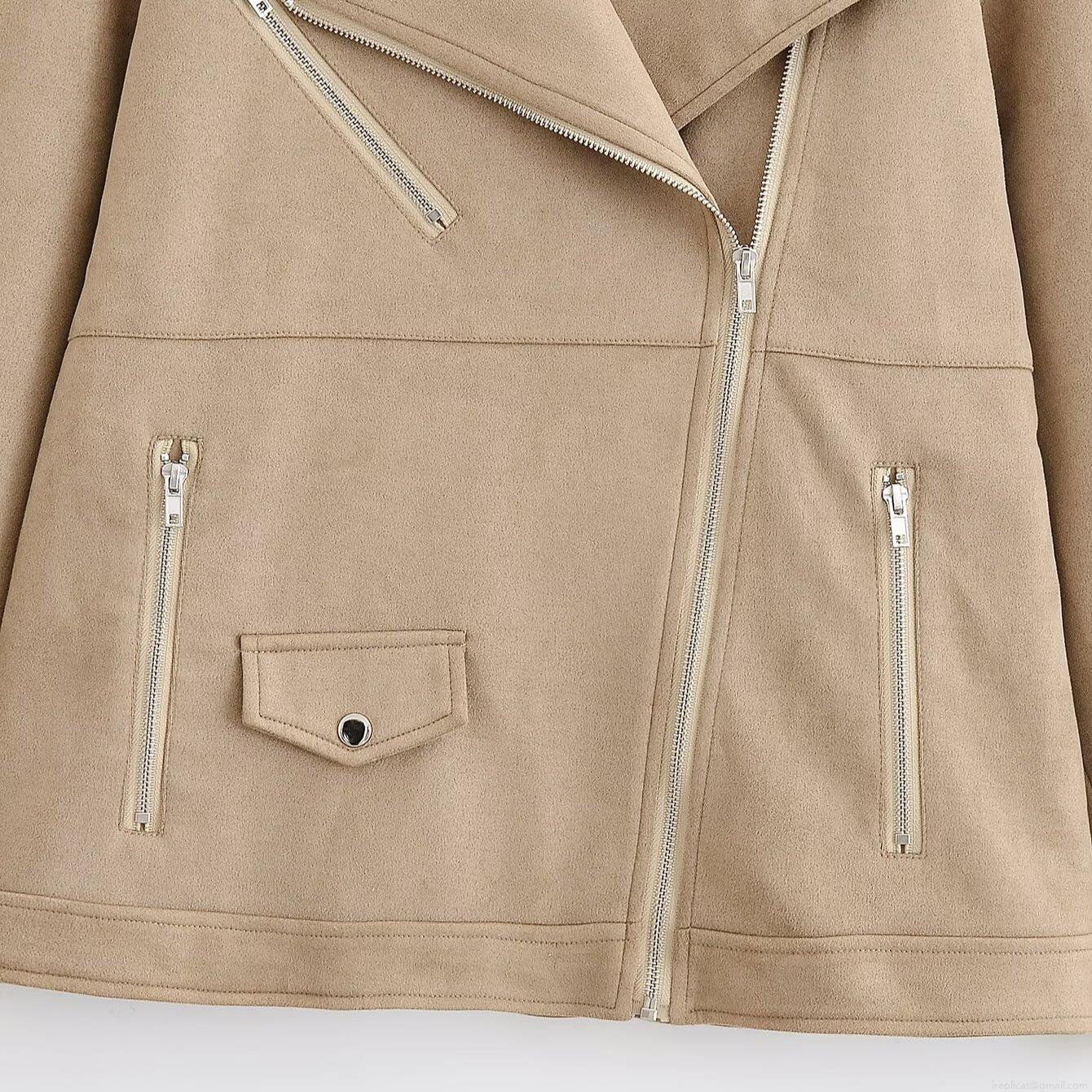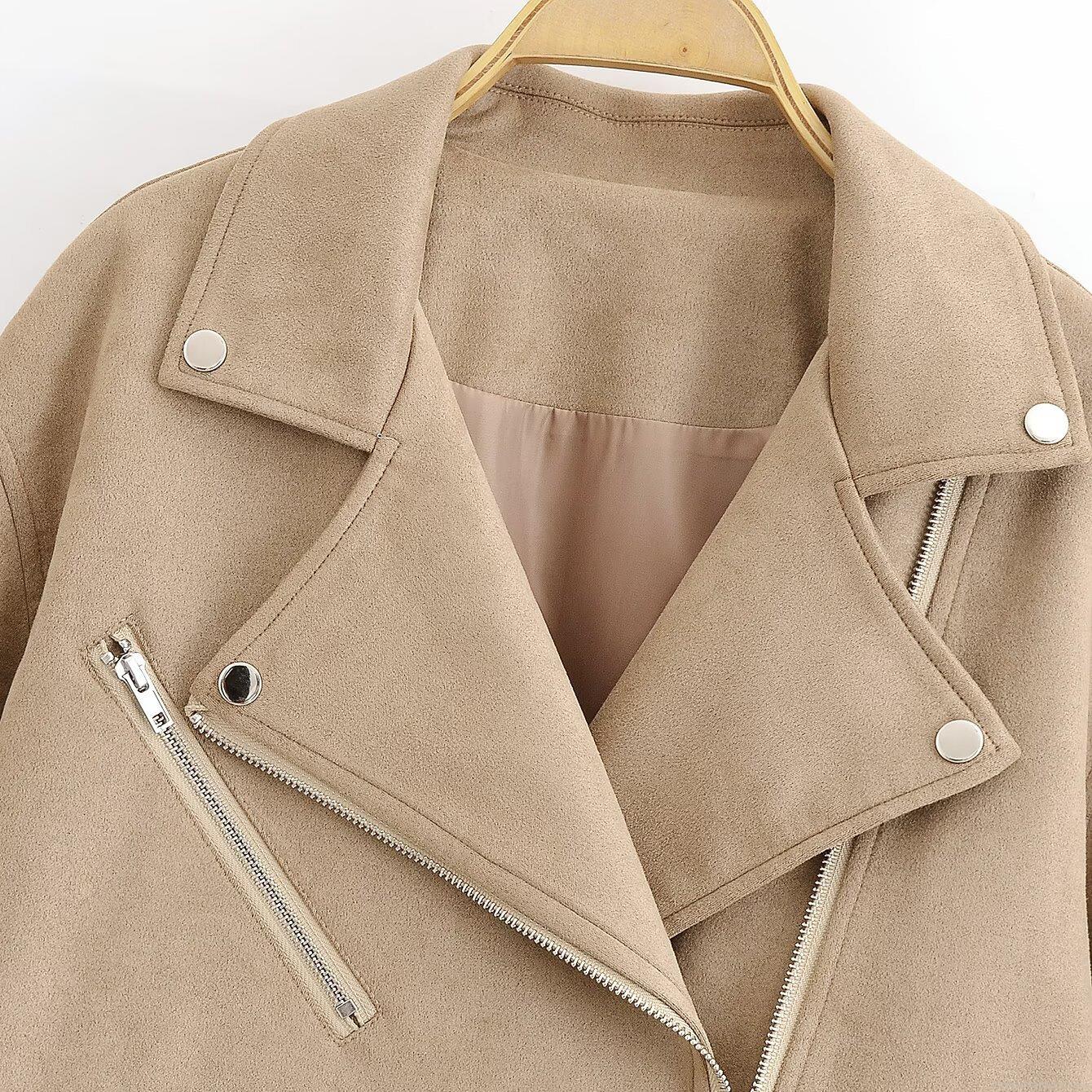 • Women Faux Suede Biker Jacket Lapel Zip Up Moto Coat Casual Fall Winter Fashion Outerwear With Metal Zippers Pockets Khaki Camel