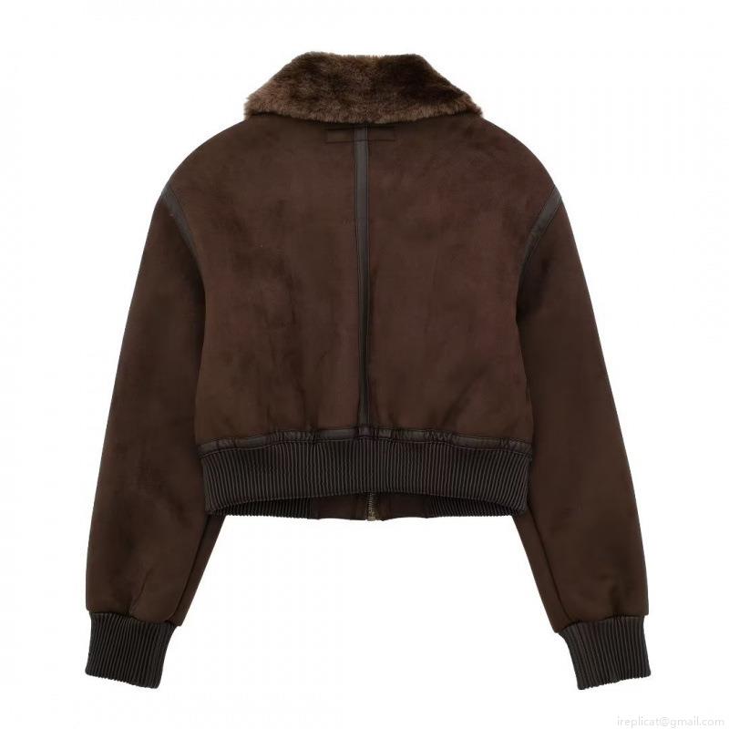 Women Faux Suede Fur Integrated Aviator Jacket Thick Faux Fur Collar Loose Moto Jacket Warm Winter Coat Fashion Streetwear Outwear