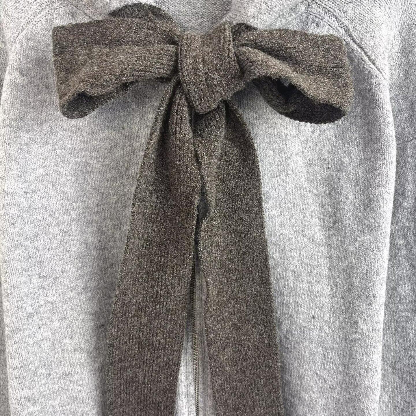• Women Hooded Knitted Jacket Large Bow Decoration Zip Up Cardigan Acrylic Polyester Spandex Blend Long Sleeve Streetwear Casual Outerwear For Autumn Winter