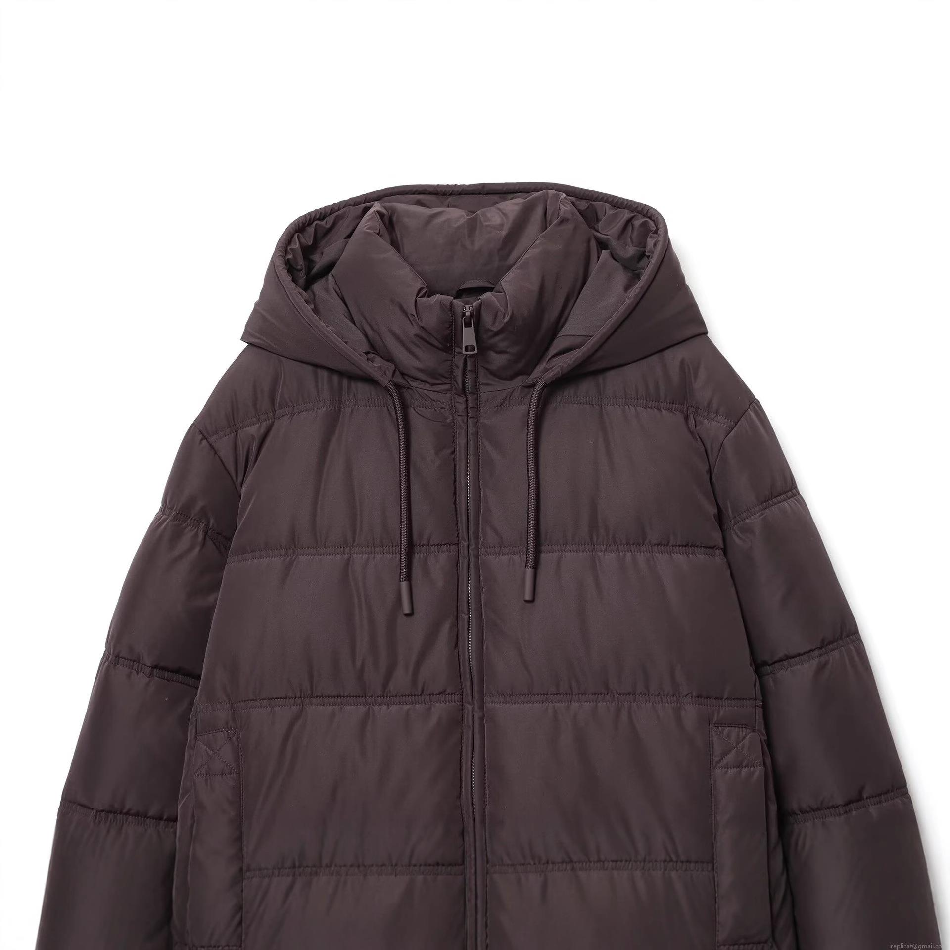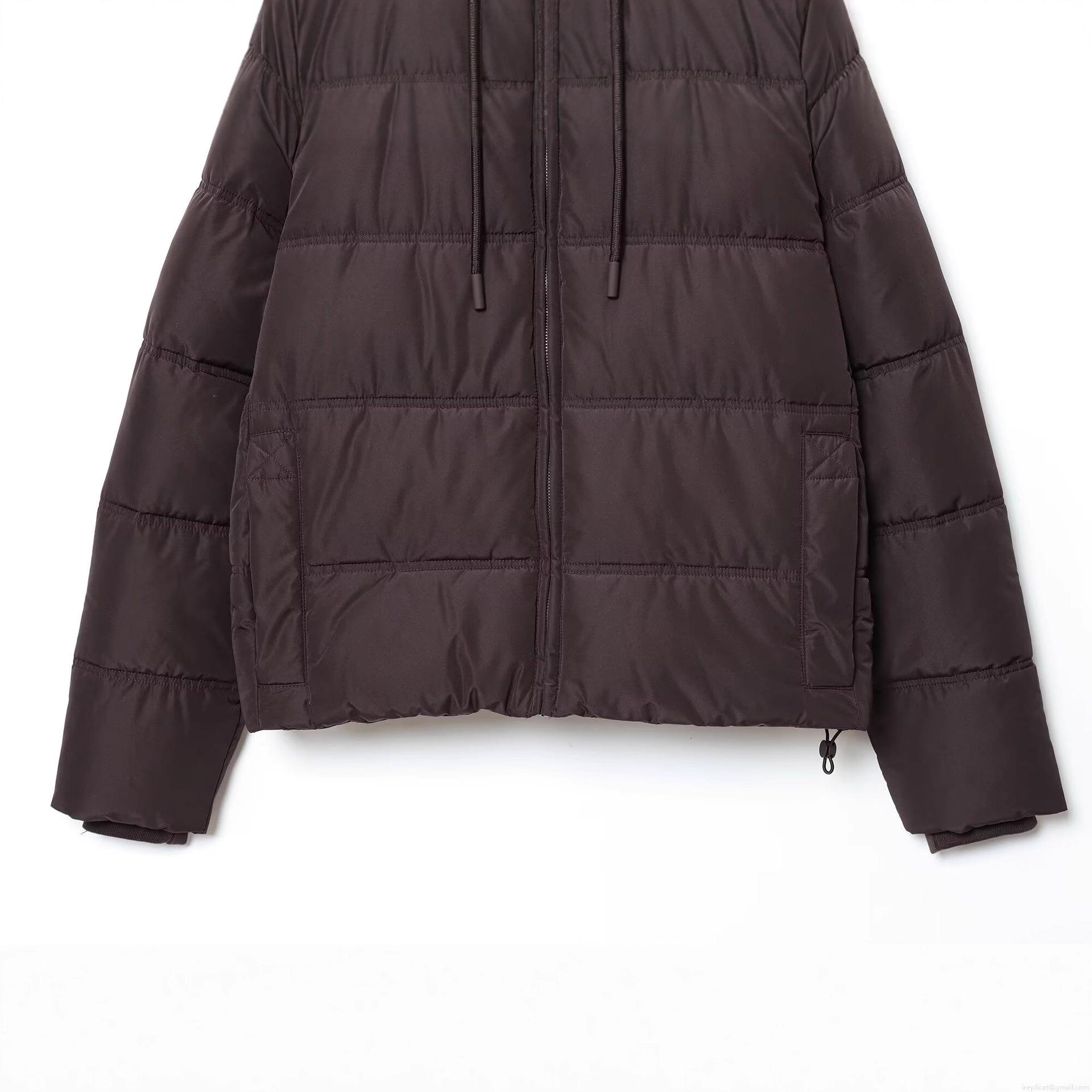 • Women Hooded Padded Puffer Jacket Quilted Polyester Warm Winter Coat Short Streetwear Casual Outerwear Zip Up Parka with Drawstring Solid Coffee Color