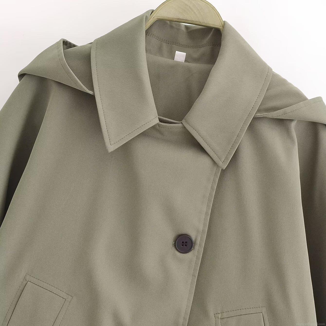 • Women Hooded Trench Coat Casual 100% Polyester Solid Color Windproof Cape Style Jacket Long Sleeve Short Outerwear For Autumn Winter Ladies Clothing Fashion Comfort Style