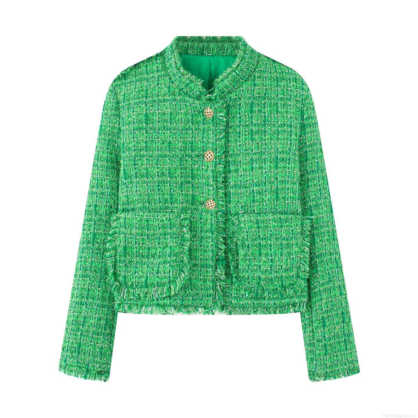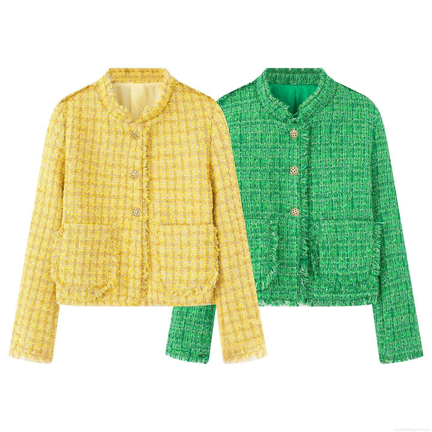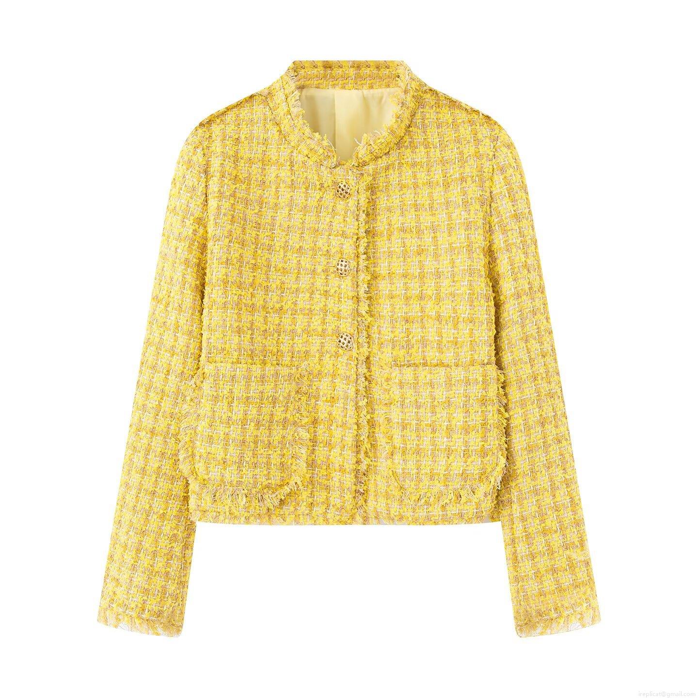 • Women Lady Style Tweed Jacket Elegant Polyester Short Coat With Gold Buttons Fringe Trim For Office Dating Outwear Spring Autumn Fashion