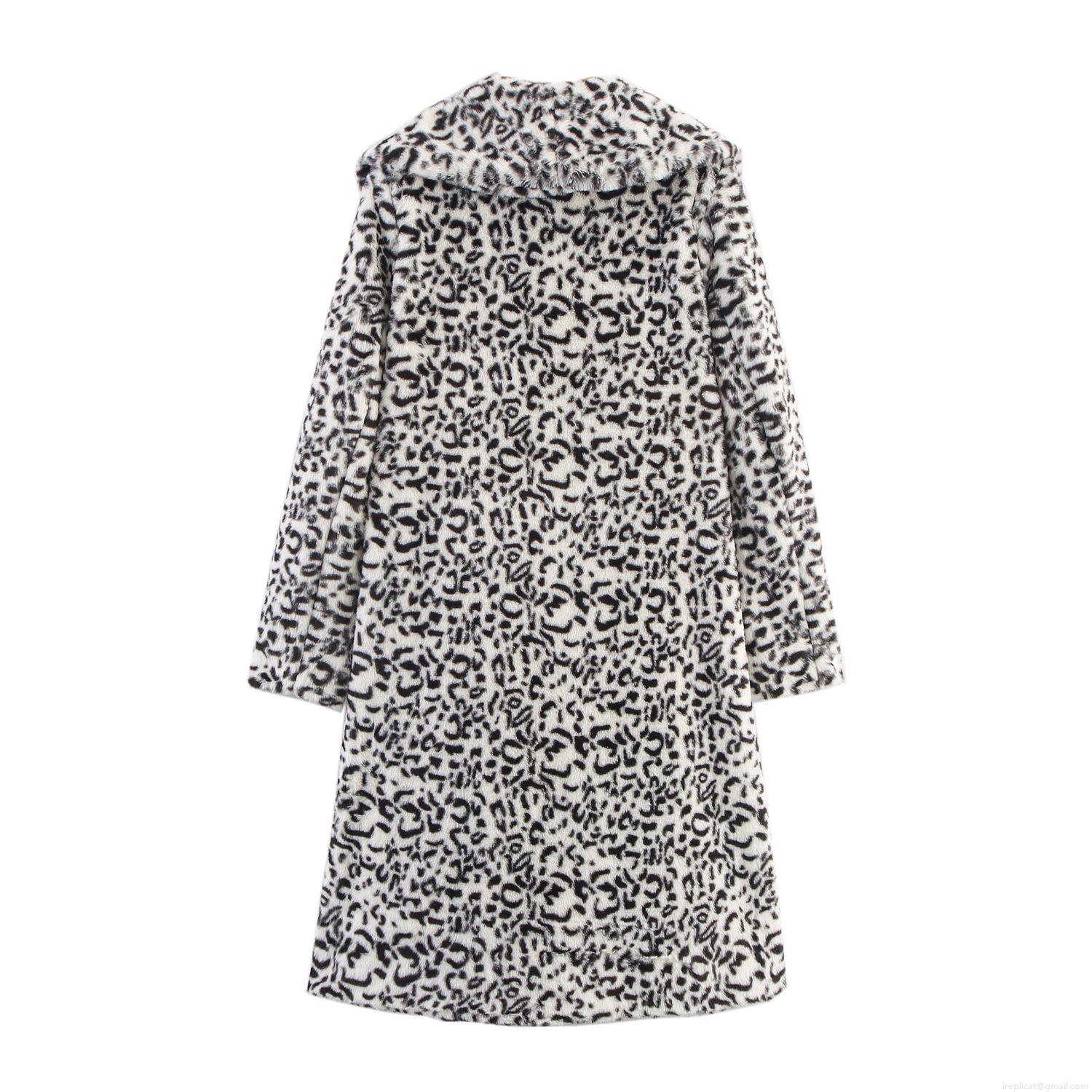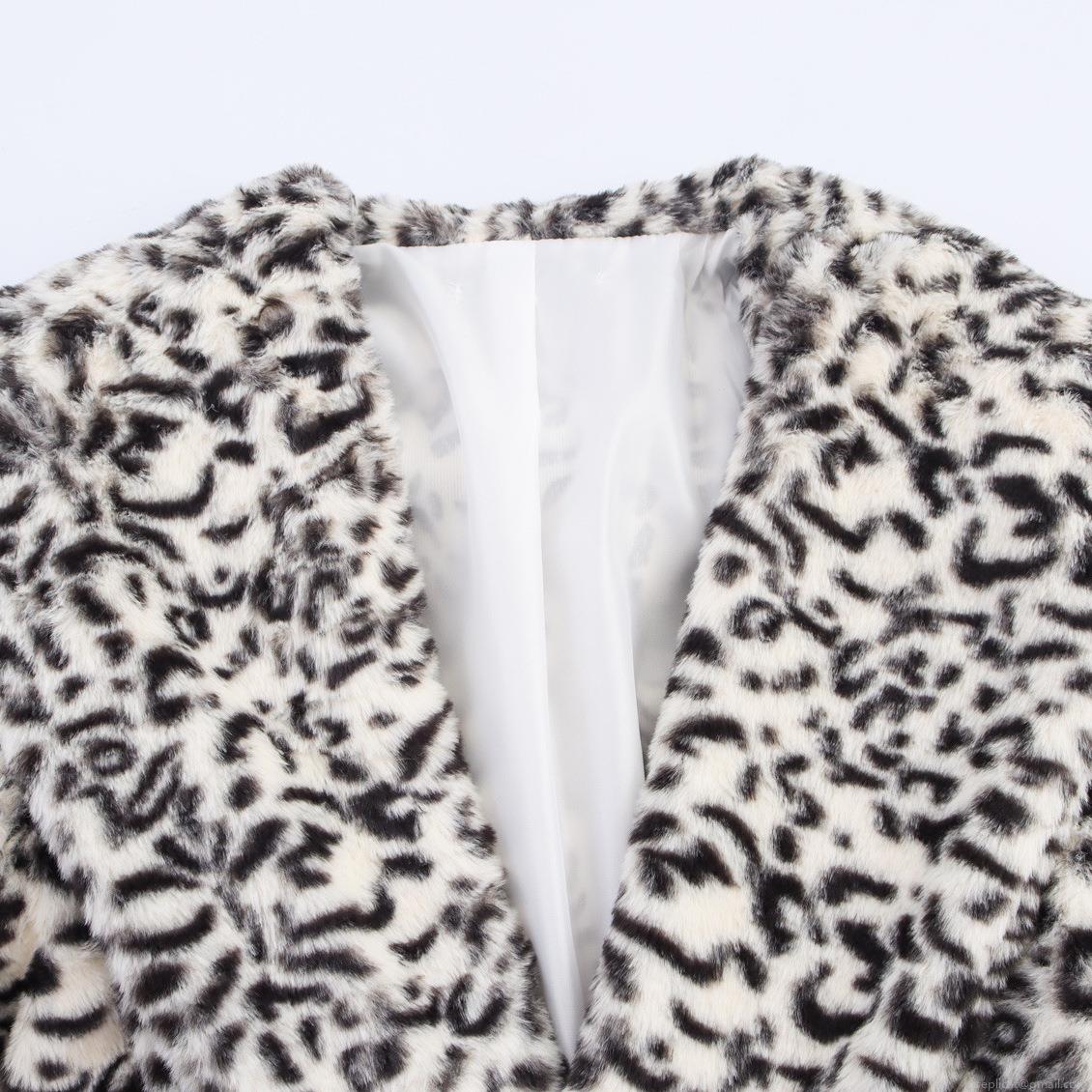 Women Leopard Print Faux Fur Coat British Style Lapel Collar Mid-Length Jacket Autumn Winter Thick Warm Long Sleeve Outwear Streetwear