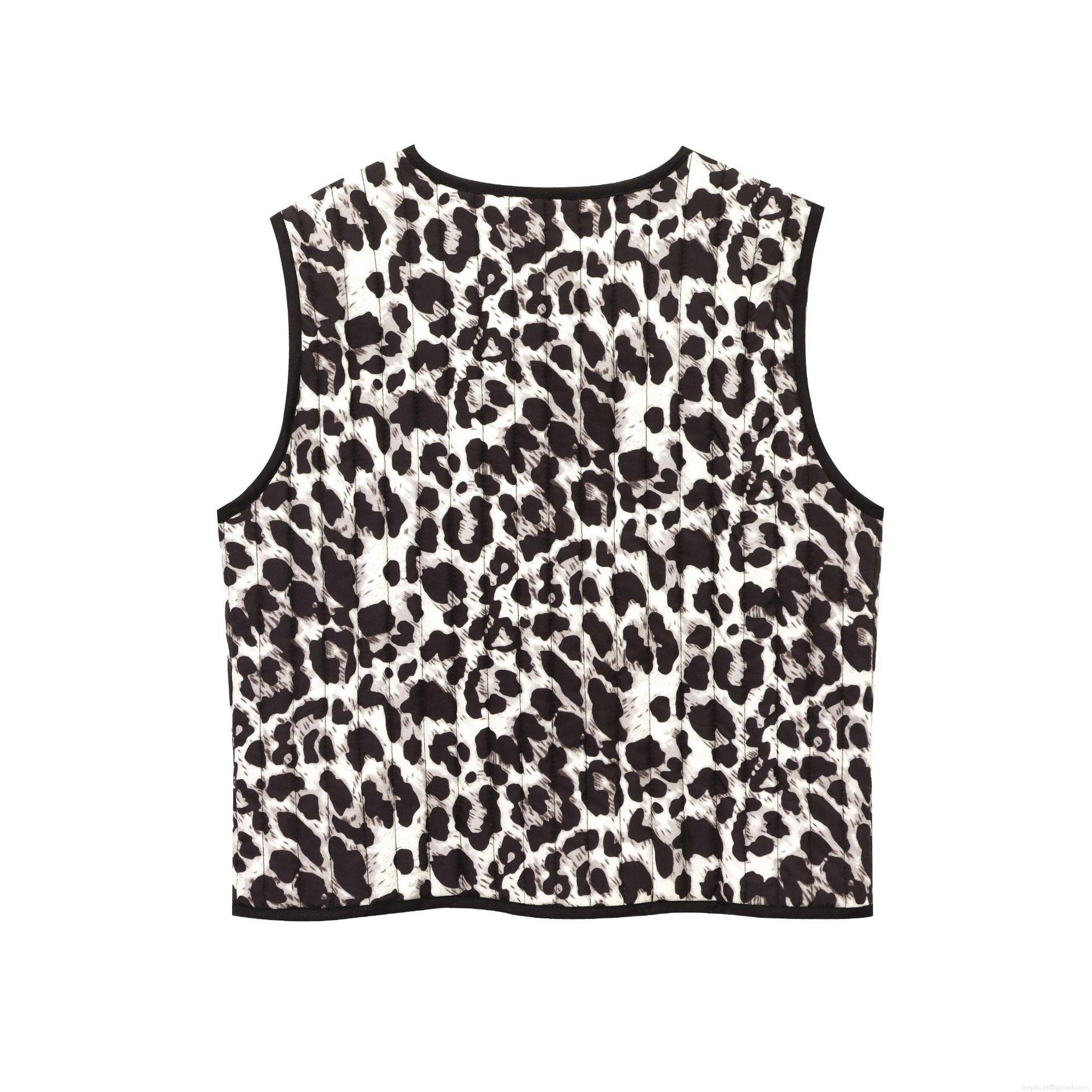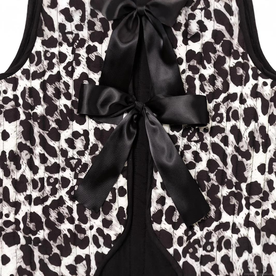 • Women Leopard Print Quilted Vest Jacket With Large Black Satin Bows Sleeveless Round Neck Waistcoat Fashion Streetwear Outerwear For Lady