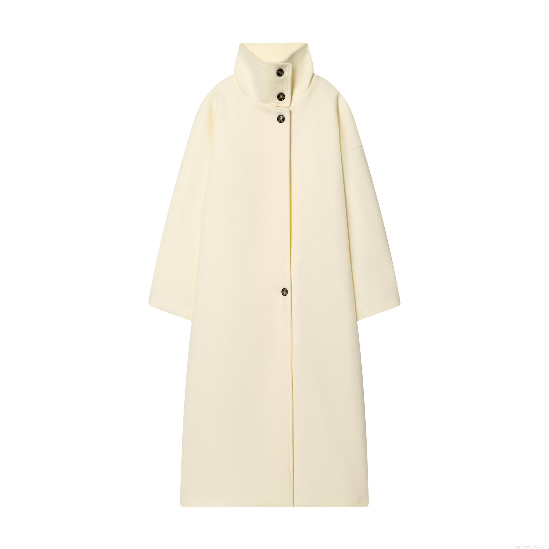 • Women Long Woolen Blend Coat Elegant Stand Collar Single Breasted Jacket Solid Color Loose Overcoat For Autumn Winter Office Daily Lady