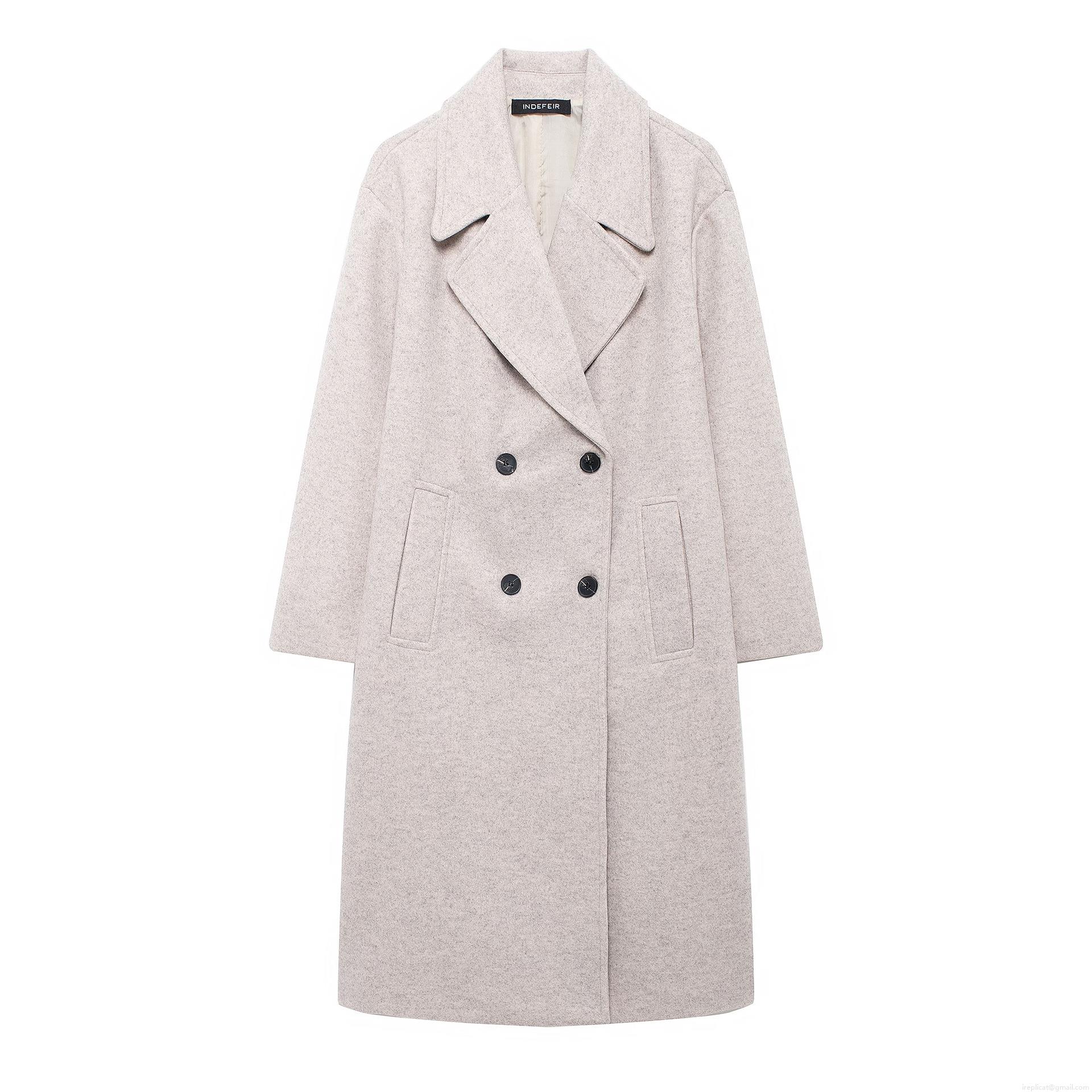 • Women Long Woolen Coat Autumn Winter Double Breasted Lapel Overcoat Solid Color Long Sleeve Outwear Streetwear Jacket With Pockets