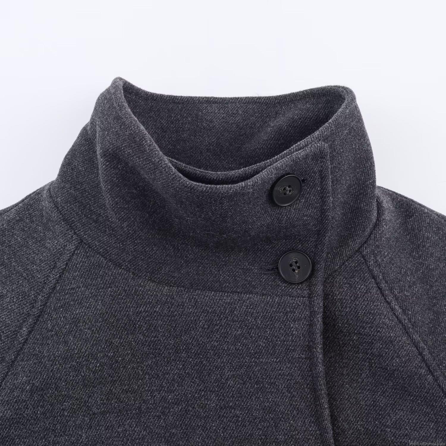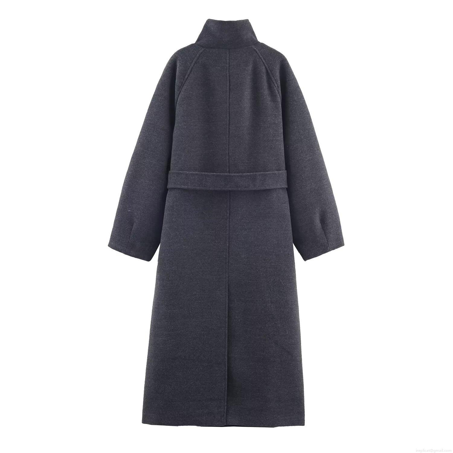 • Women Long Woolen Coat Elegant Stand Collar Belted Overcoat Winter Warm Solid Color British Style Trench Coat For Ladies