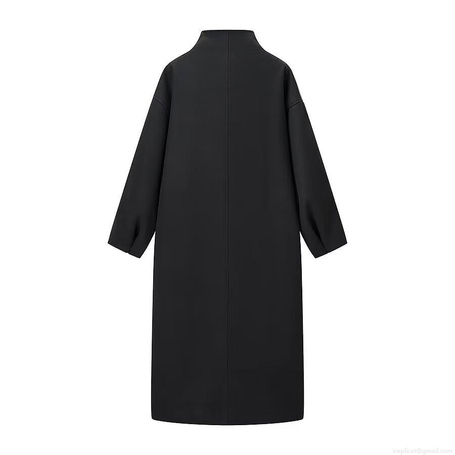 • Women Long Woolen Overcoat Elegant Funnel Neck Loose Fit Solid Color Coat Warm Autumn Winter Commuter Jacket Apparel for Ladies