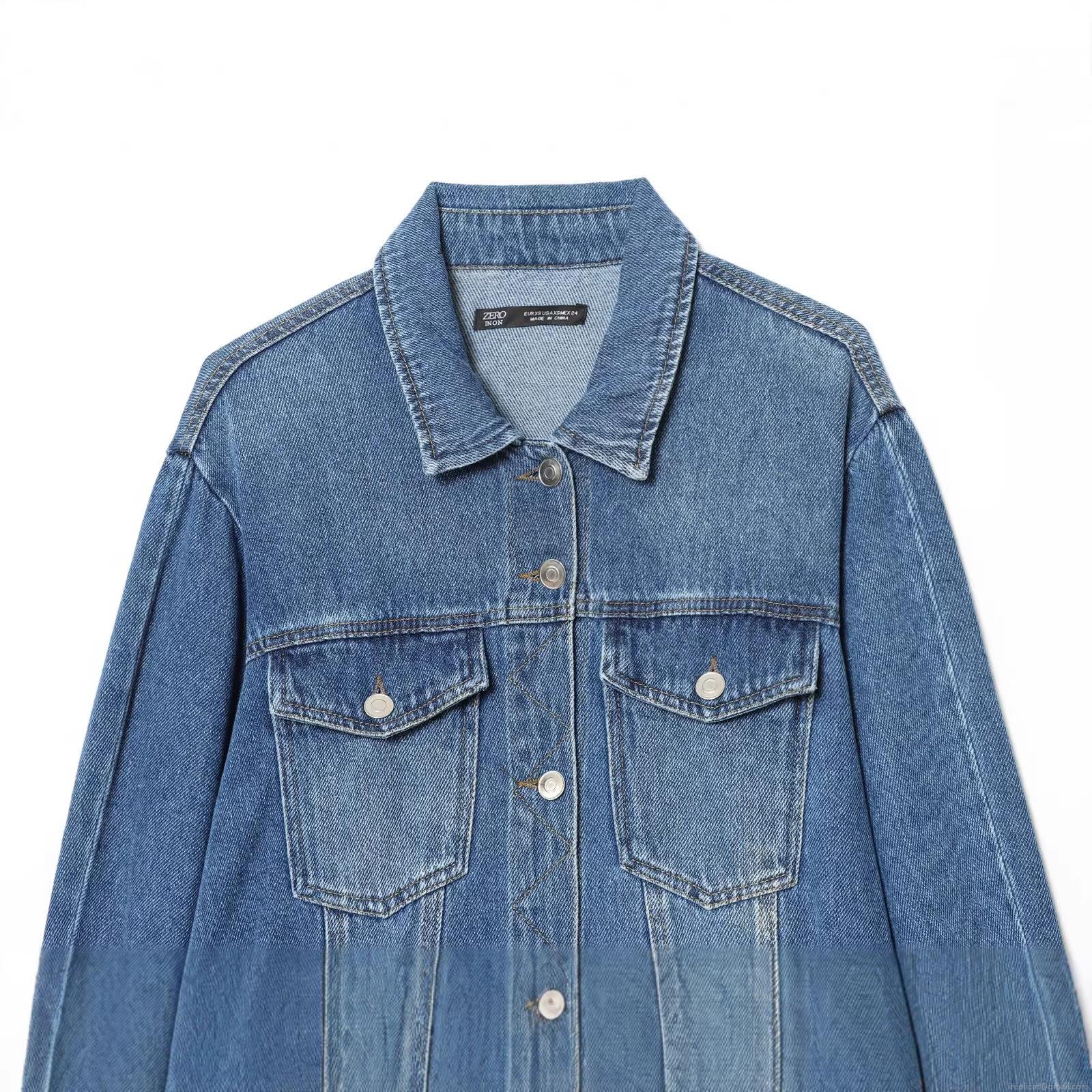 • Women Loose Denim Jacket 85 Percent Cotton Long Sleeve Coat With Button Down Flap Pockets Casual Streetwear Fashion Blue Jean Outerwear