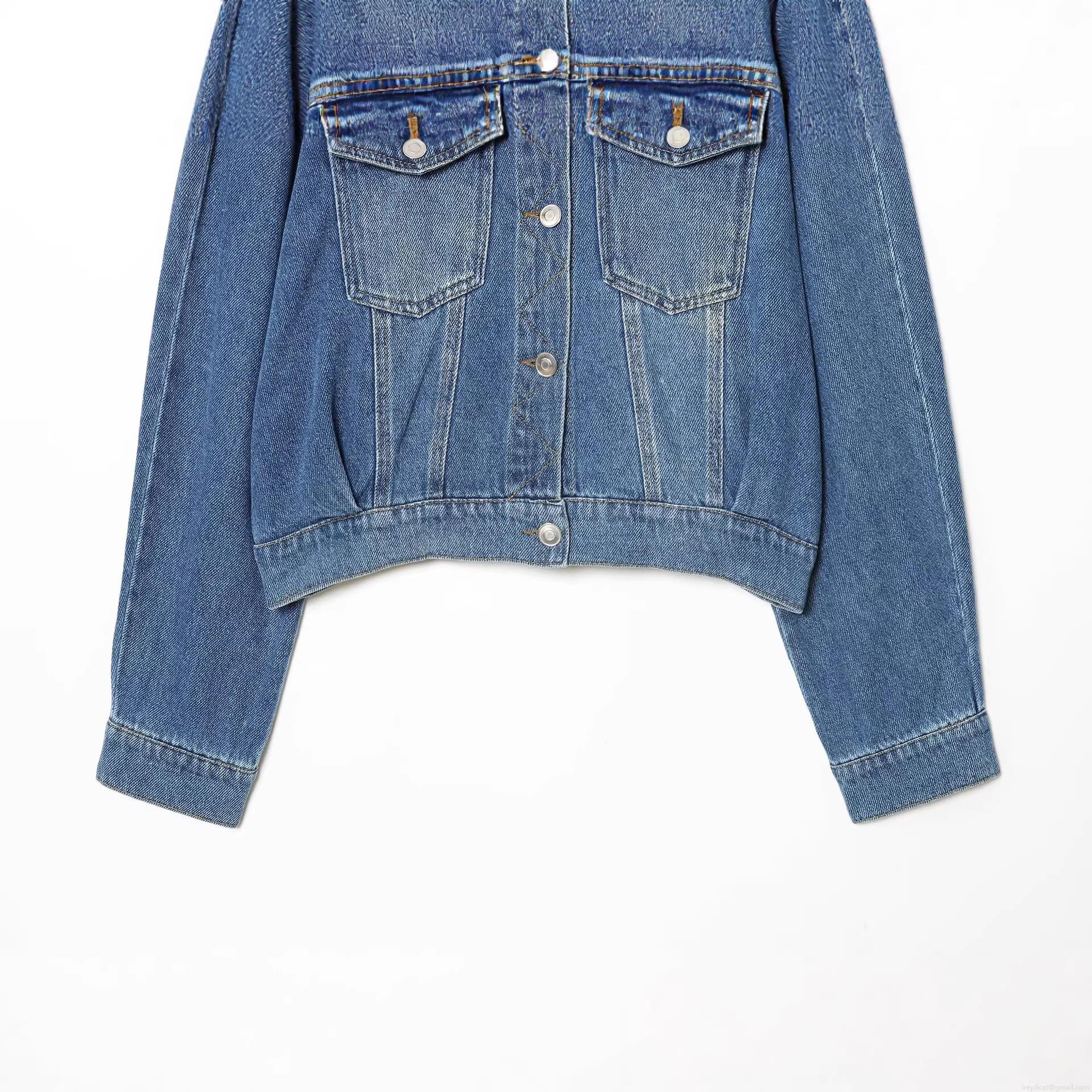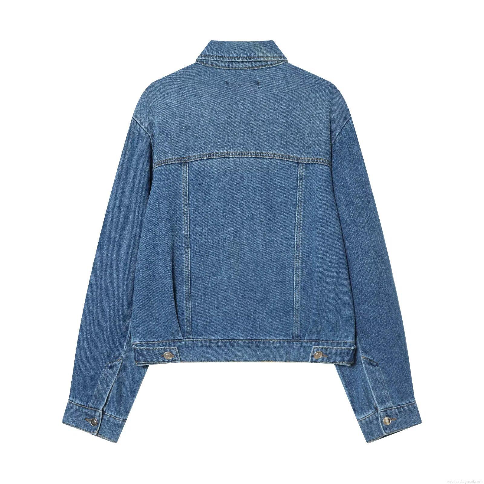 Women Loose Denim Jacket 85 Percent Cotton Long Sleeve Coat With Button Down Flap Pockets Casual Streetwear Fashion Blue Jean Outerwear