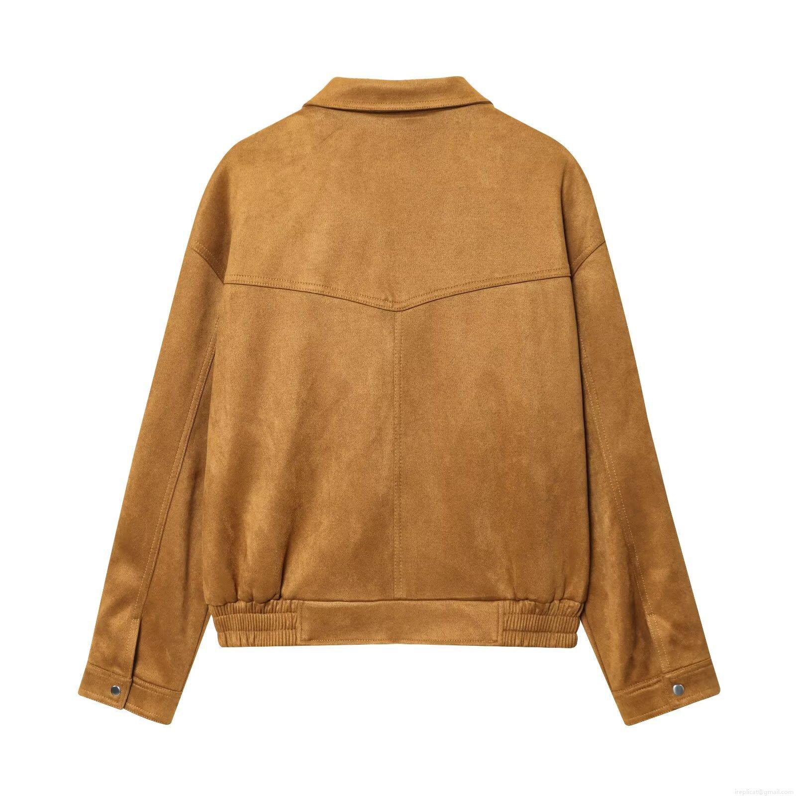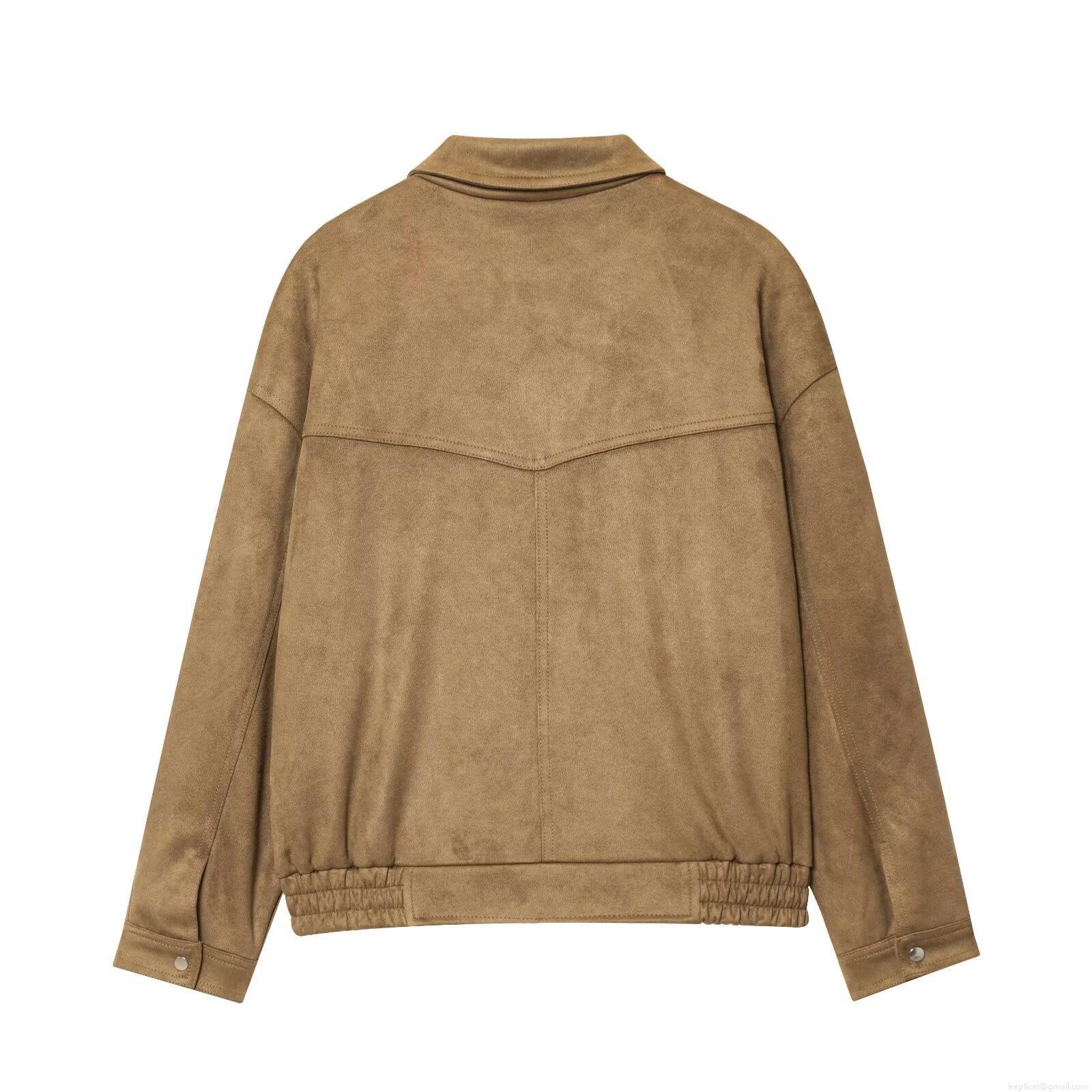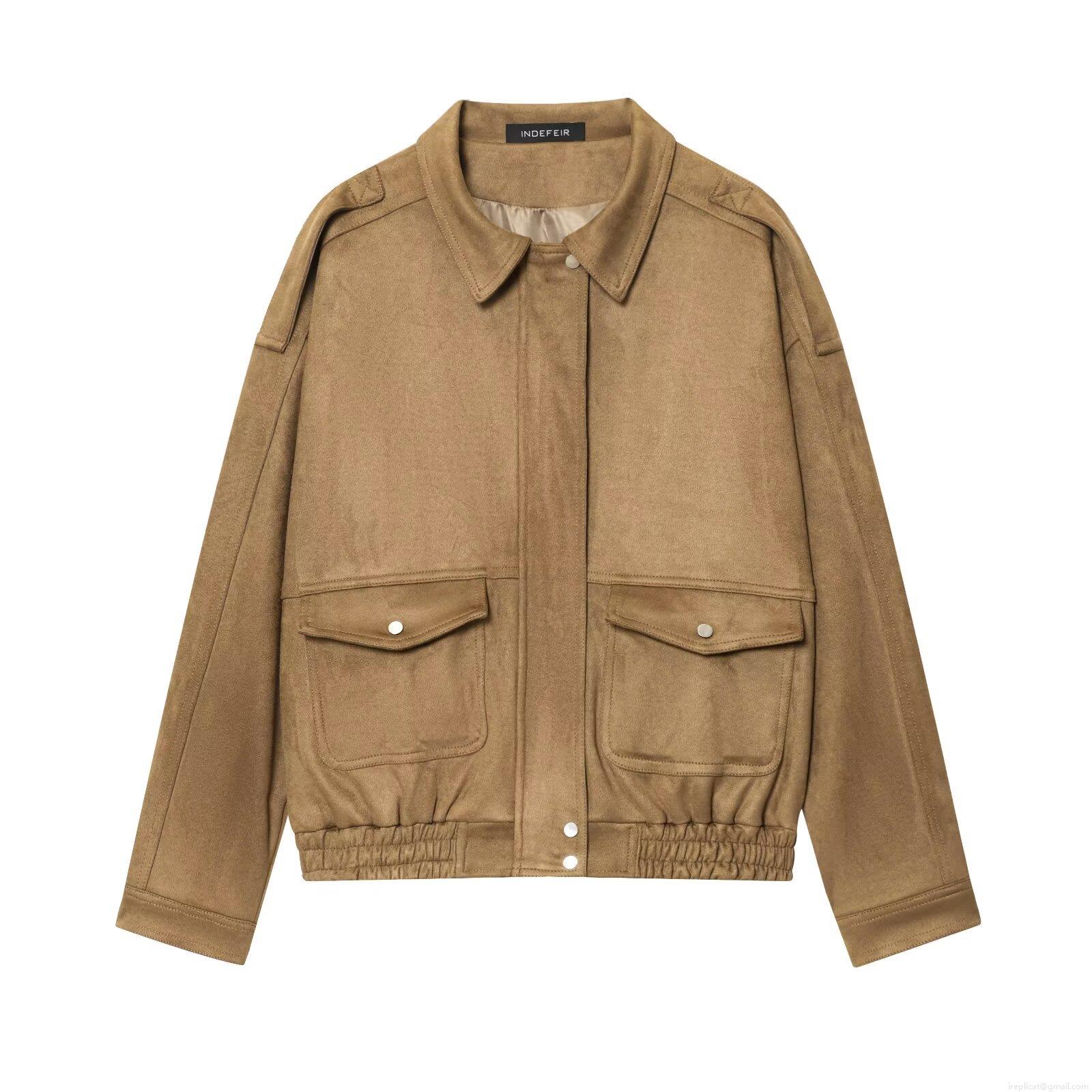 • Women Loose Faux Suede Bomber Jacket Solid Color Retro Lapel Cargo Flight Coat With Epaulettes And Elastic Hem Streetwear Casual Outerwear For Ladies