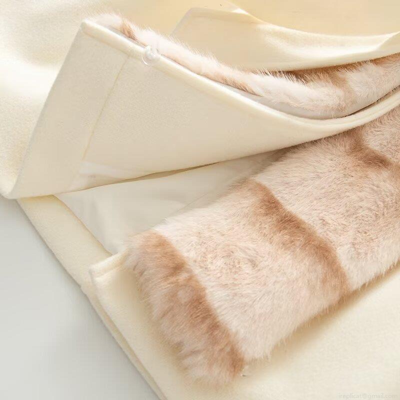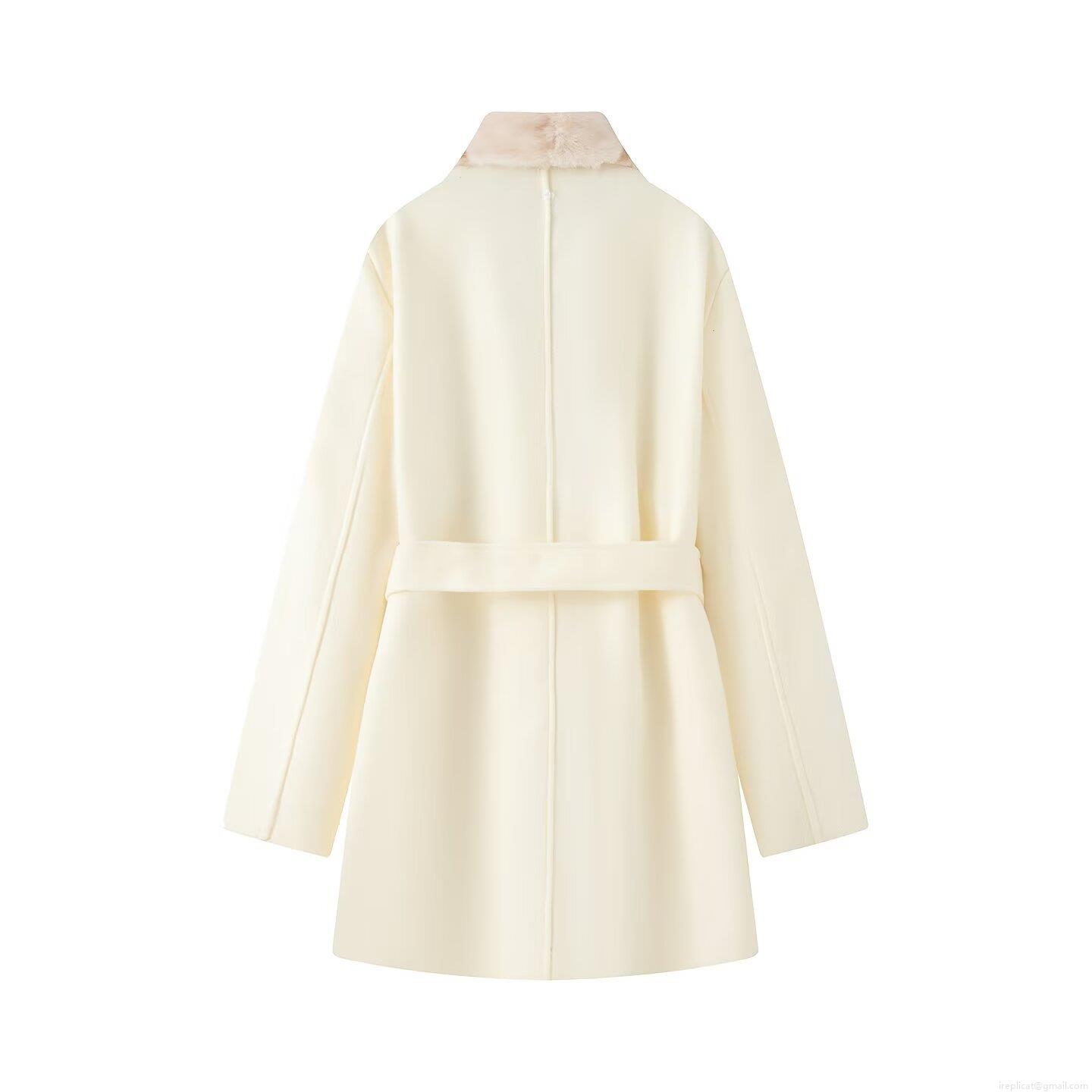 • Women Mid-Length Woolen Coat With Removable Faux Fur Collar Elegant Loose Fit Belted Overcoat Winter Warm Socialite Style Outerwear For Women