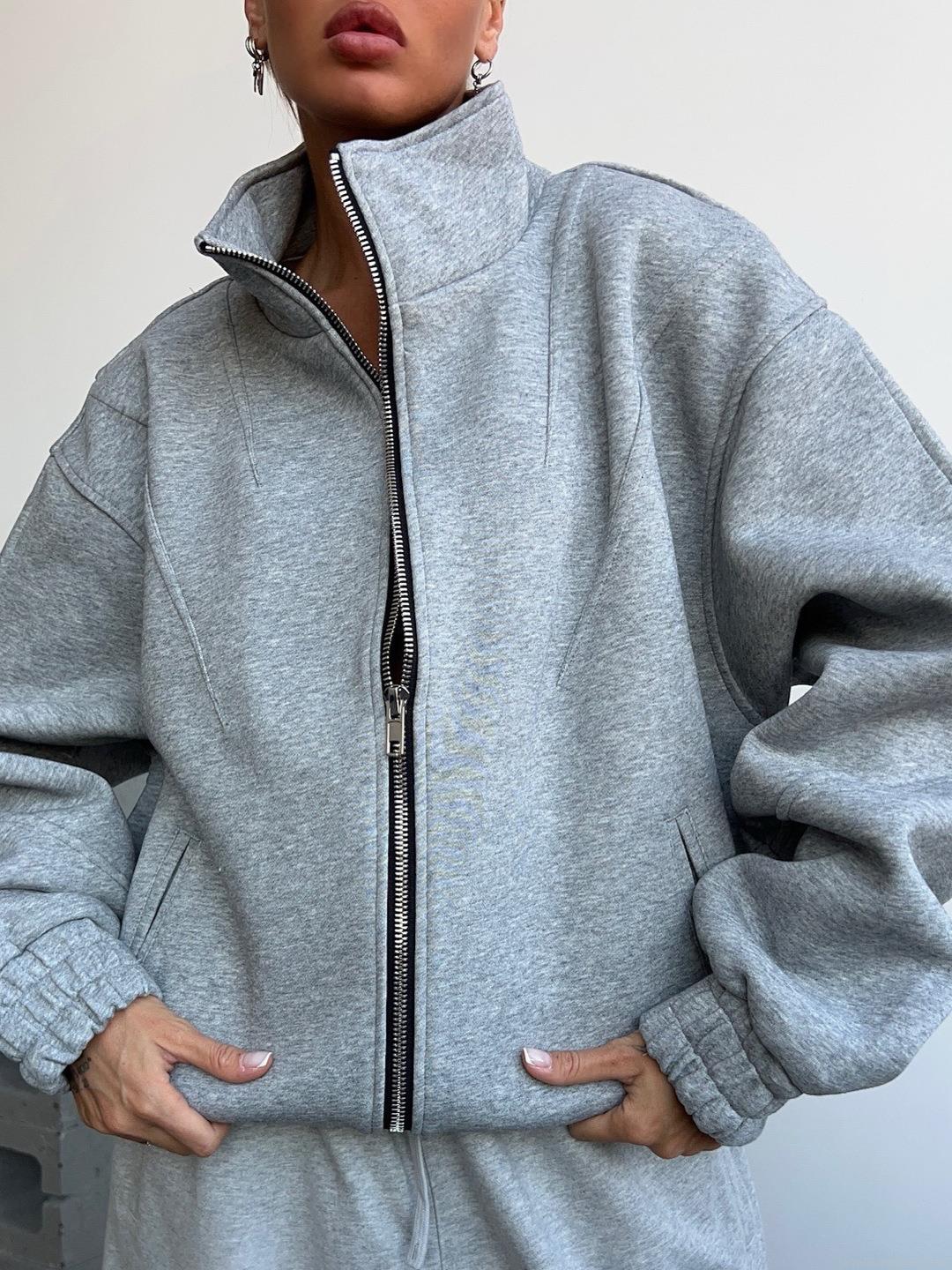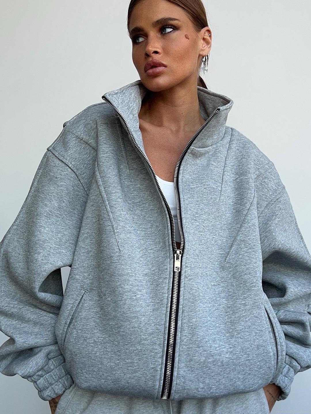 • Women Oversized Grey Letter Print Stand Collar Zipper Jacket Streetwear Colorful Graffiti Cotton Blend Autumn Winter Loose Flight Suit Outerwear Hoodie