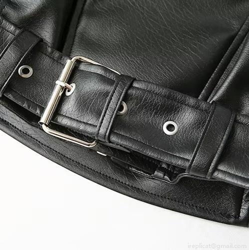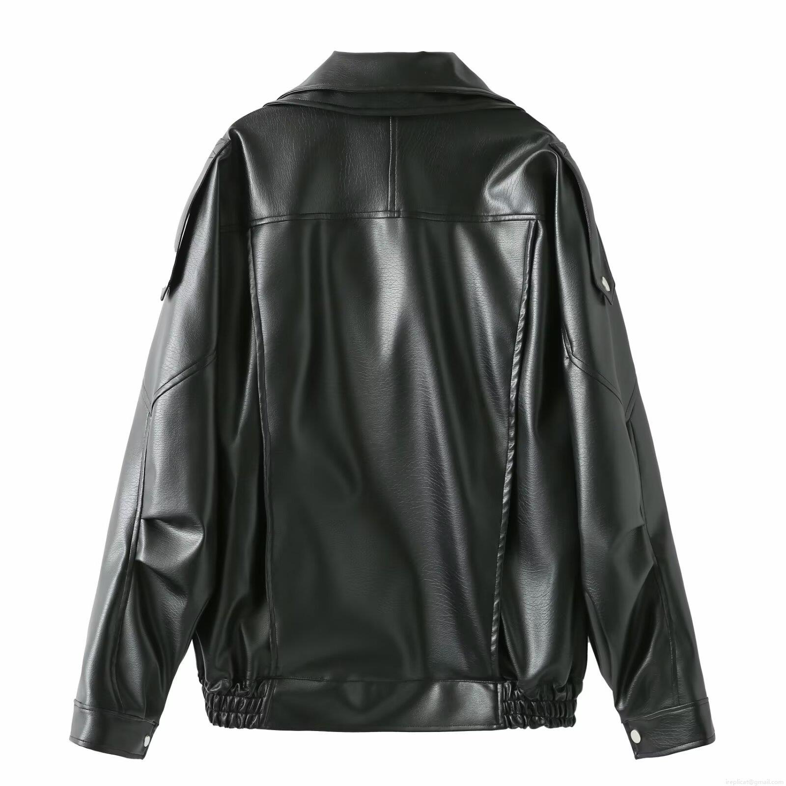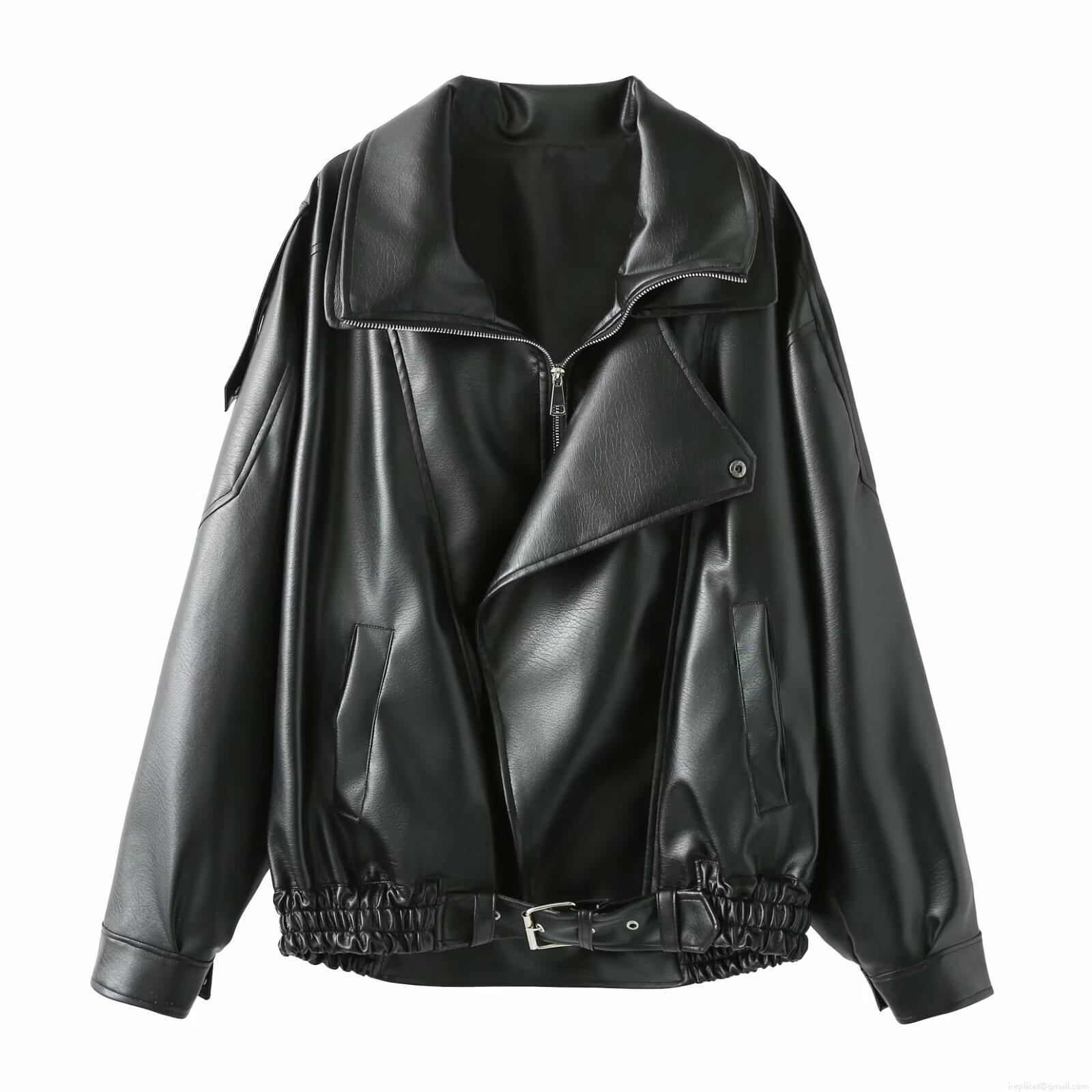 • Women Oversized PU Faux Leather Biker Jacket Fashion Moto Style Loose Fit Lapel Collar Metal Zipper Outerwear With Adjustable Buckle Belt Streetwear Spring Autumn Solid Black Leather Coat