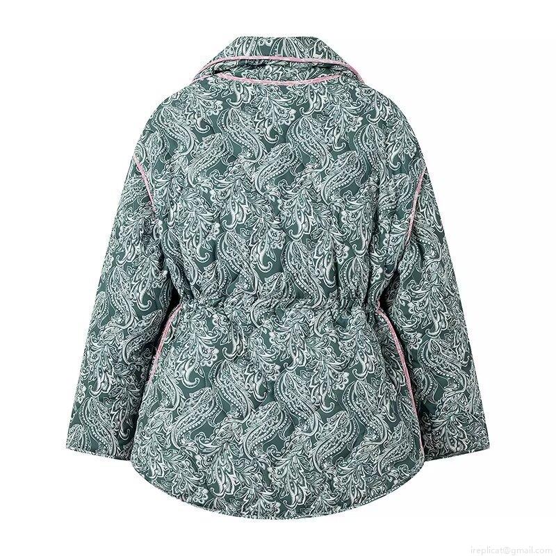 Women Paisley Quilted Jacket Detachable Sleeves Drawstring Waist Zip Up Pink Trim Ethnic Retro Padded Outerwear Vintage Warm Puffer Coat