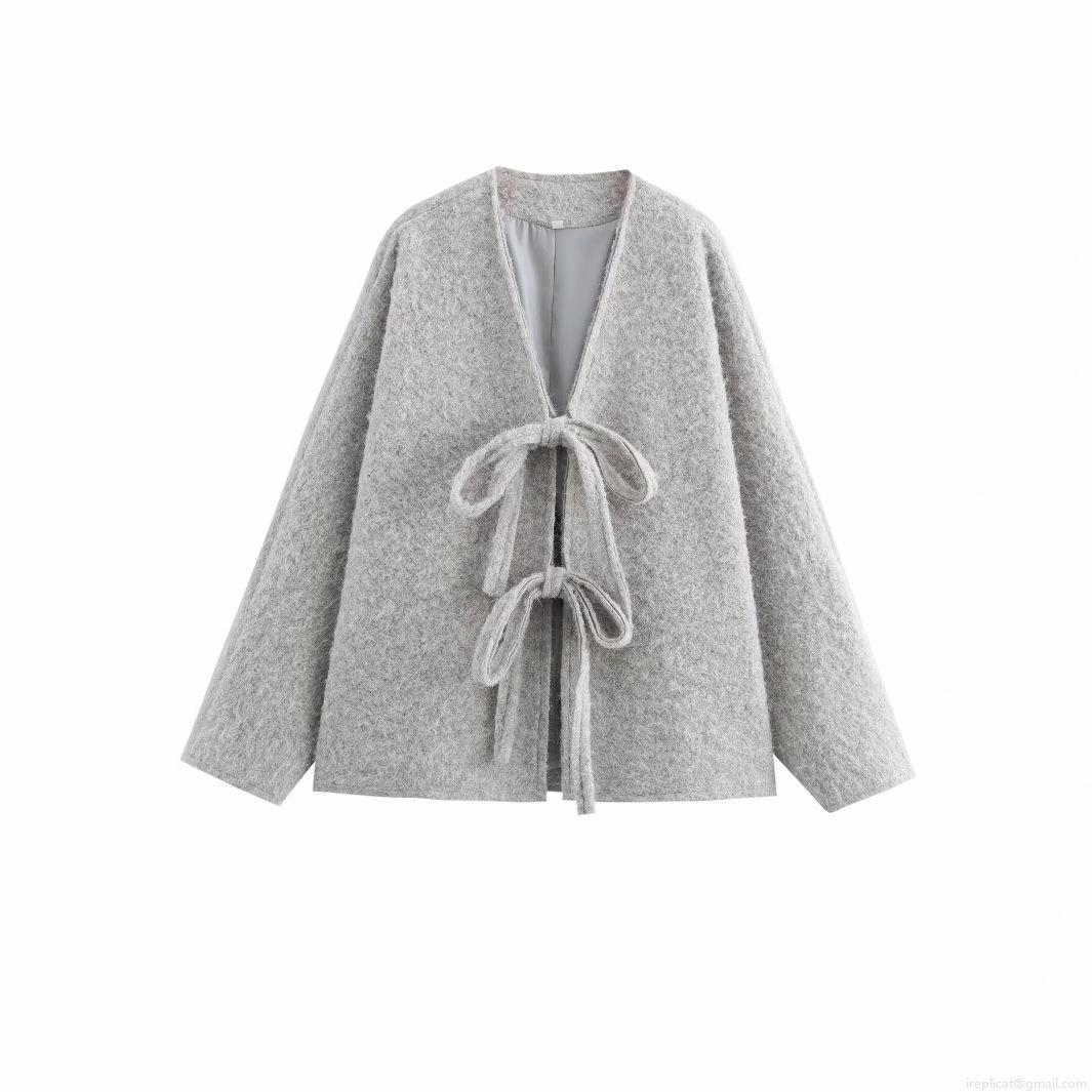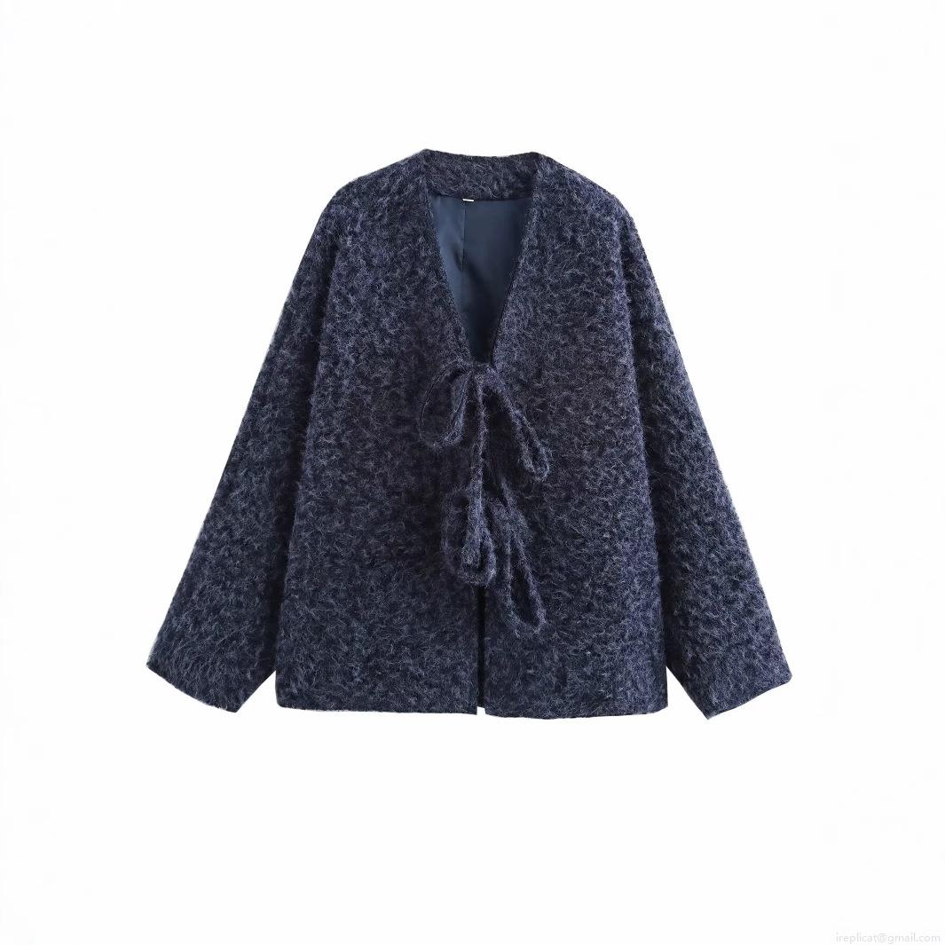 • Women Plush Faux Fur Jacket Tie-Front Bow Cardigan Fleece Shaggy Solid Color Loose Fit Outerwear Autumn Winter Casual Elegant Long Sleeve Coat For Ladies