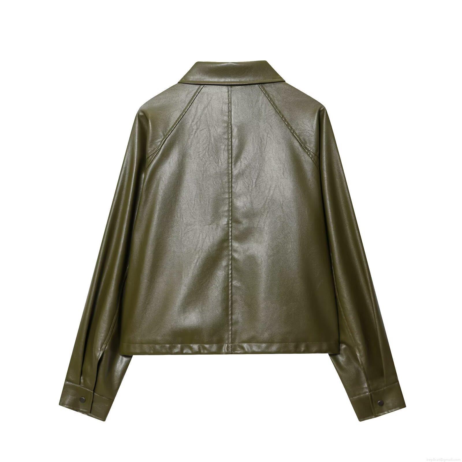 • Women PU Faux Leather Jacket Streetwear Lapel Collar Zip Up Drawstring Hem Loose Fit Casual Outerwear Long Sleeve Biker Moto Jacket For Fall Winter