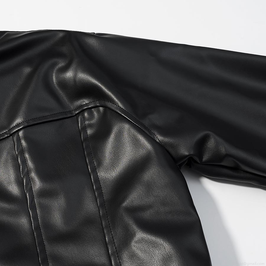 Women PU Leather Jacket Stand Collar Long Sleeve Zipper Bomber Jacket Outerwear European Street Style Short Biker Coat Lady Black Solid Color Autumn