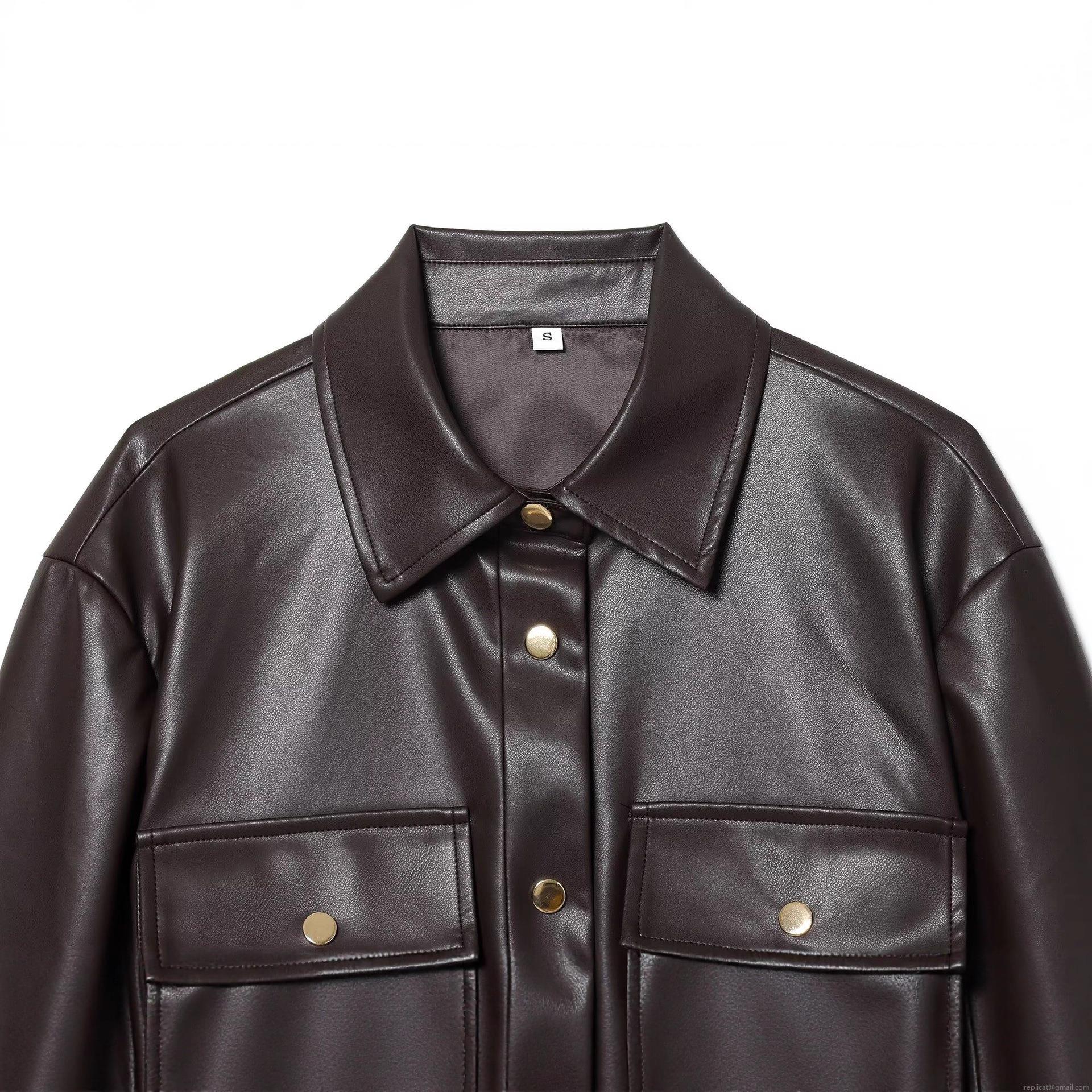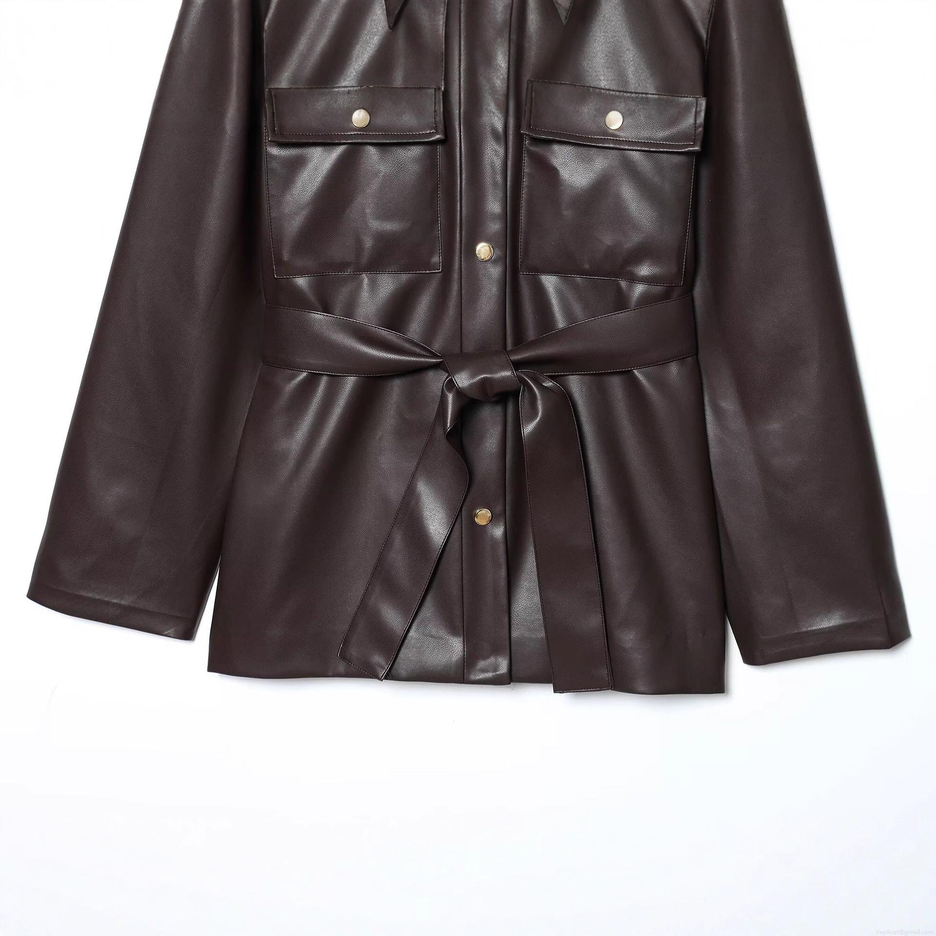 • Women PU Leather Jacket With Belt Lapel Collar Gold Buttons Long Sleeve Mid Length Waist Tie Cargo Pockets Coat For Autumn Winter Street Casual Outwear