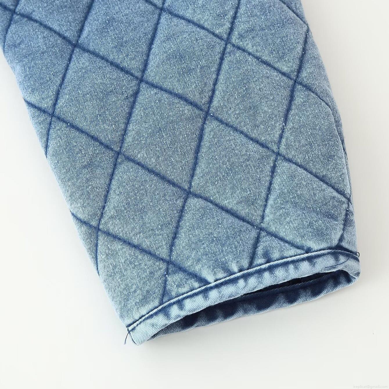 • Women Quilted Denim Jacket Ruffle Collar Washed Cotton Padded Outerwear With Bow Tie Front Long Sleeve Casual Fashion Coat For Lady