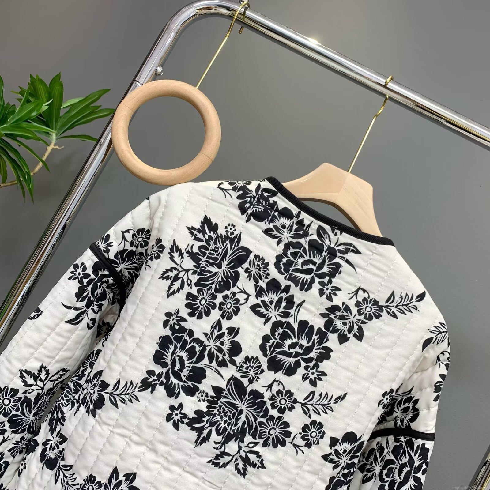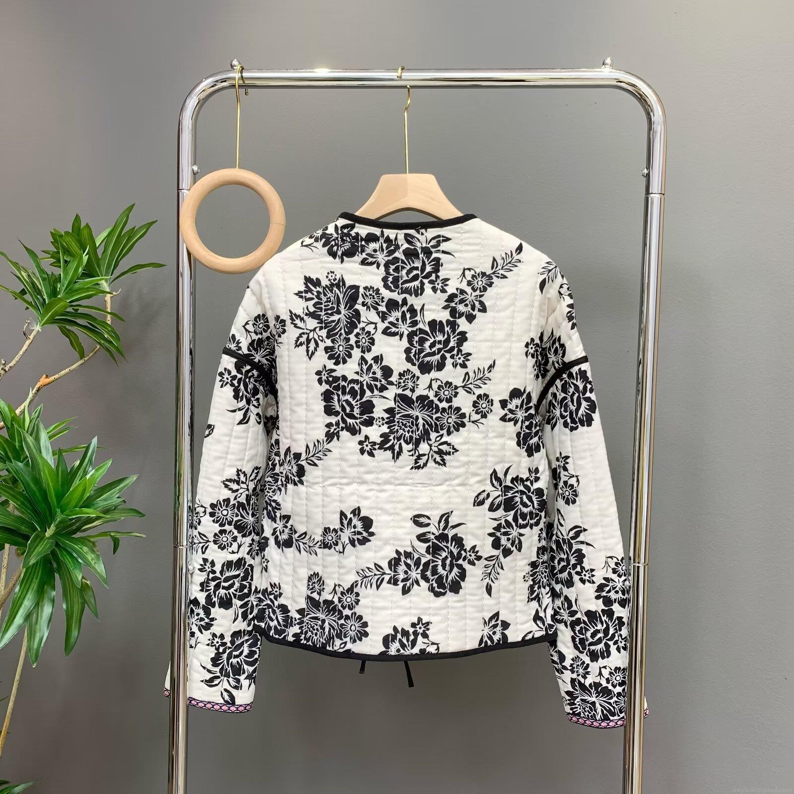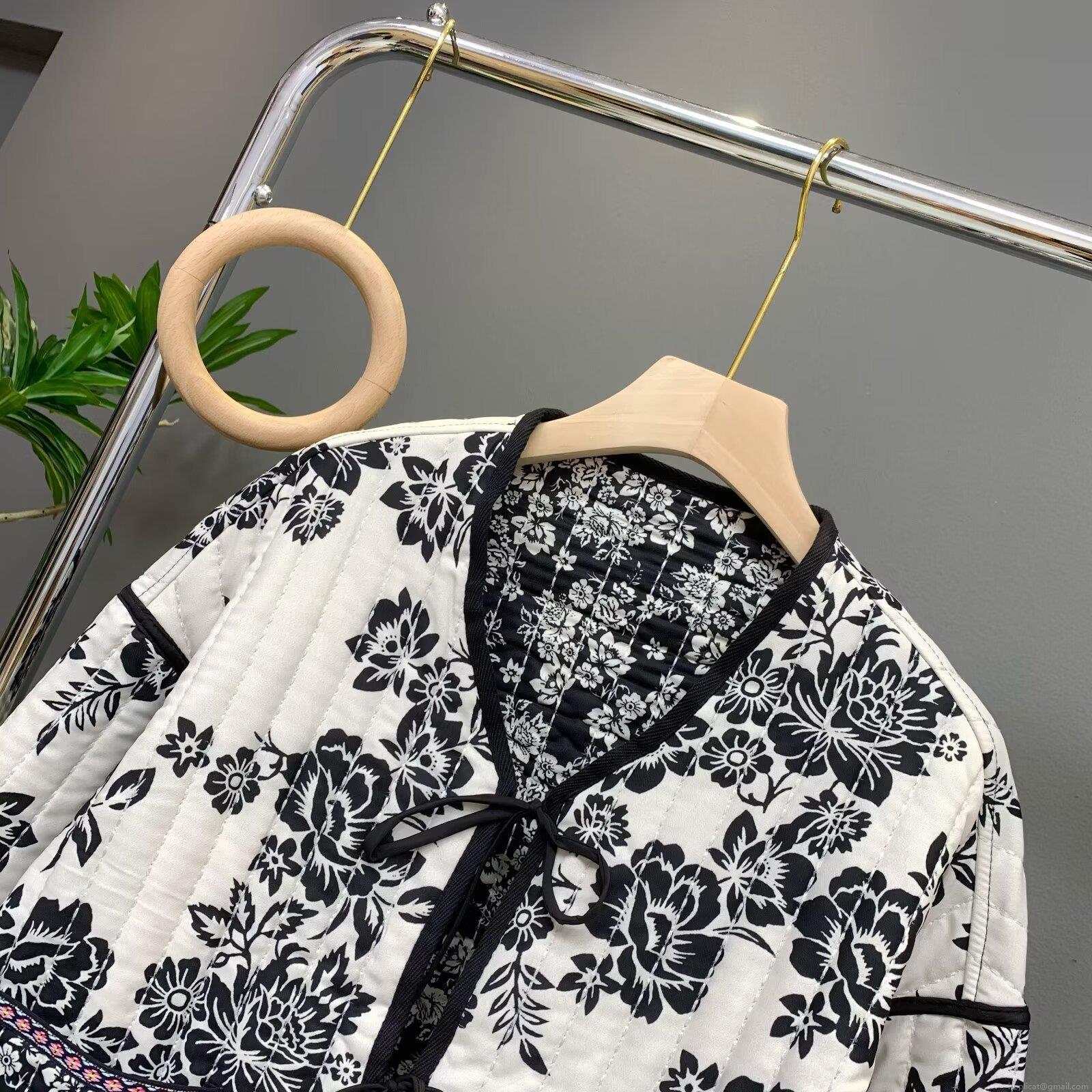 • Women Quilted Padded Jacket French Retro Floral Print Long Sleeve Short Coat With Lace-up Closure Ethnic Embroidery Trim Warm Casual Outerwear