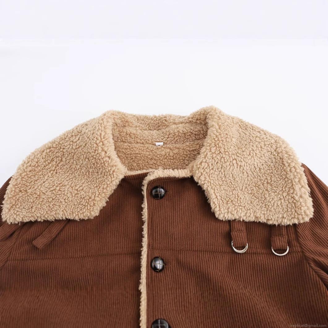 • Women Retro Corduroy Jacket With Faux Lamb Wool Collar Spliced Long Sleeve Button Down Pocket Coat For Autumn Winter Women Outerwear Street Fashion