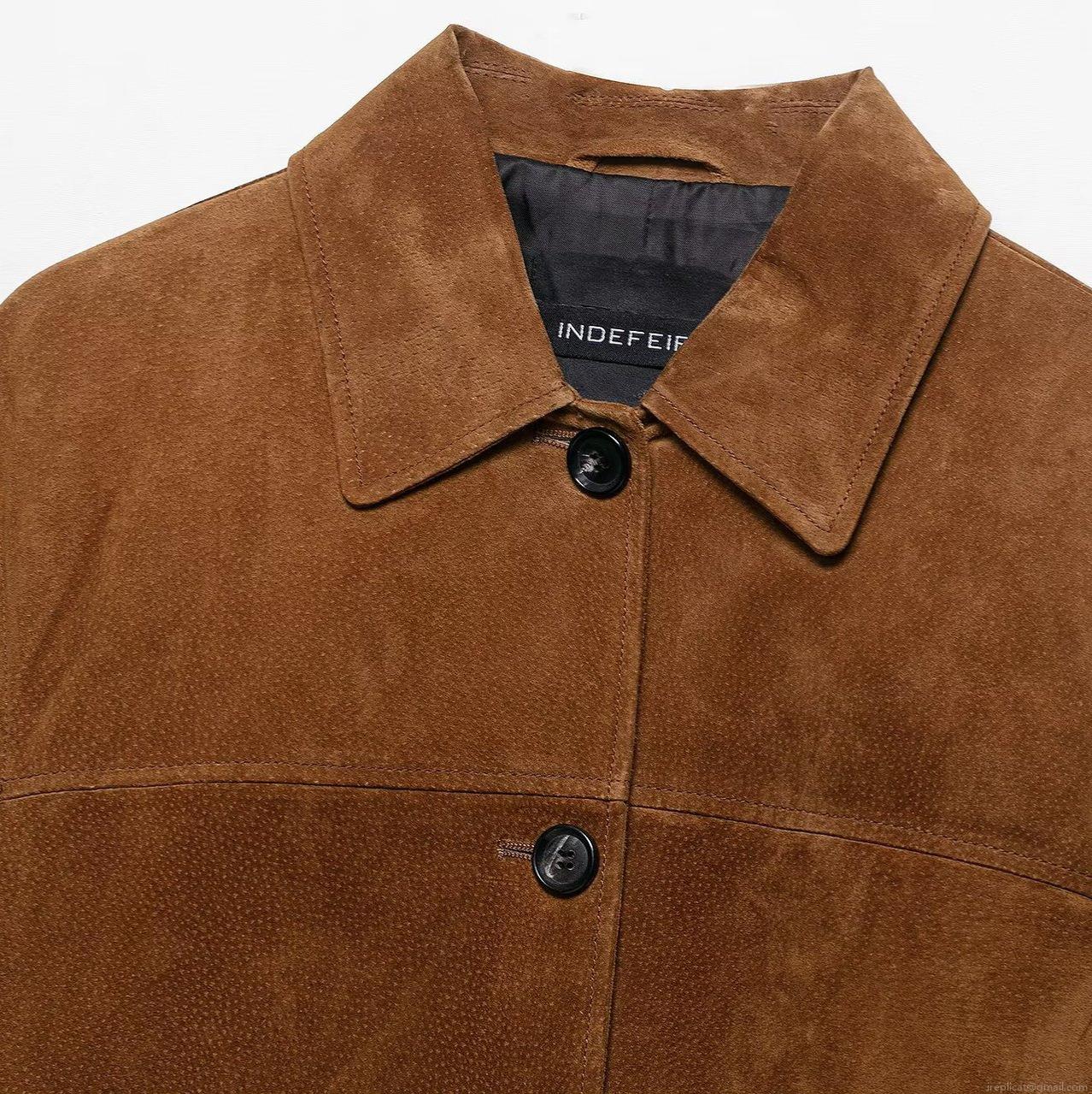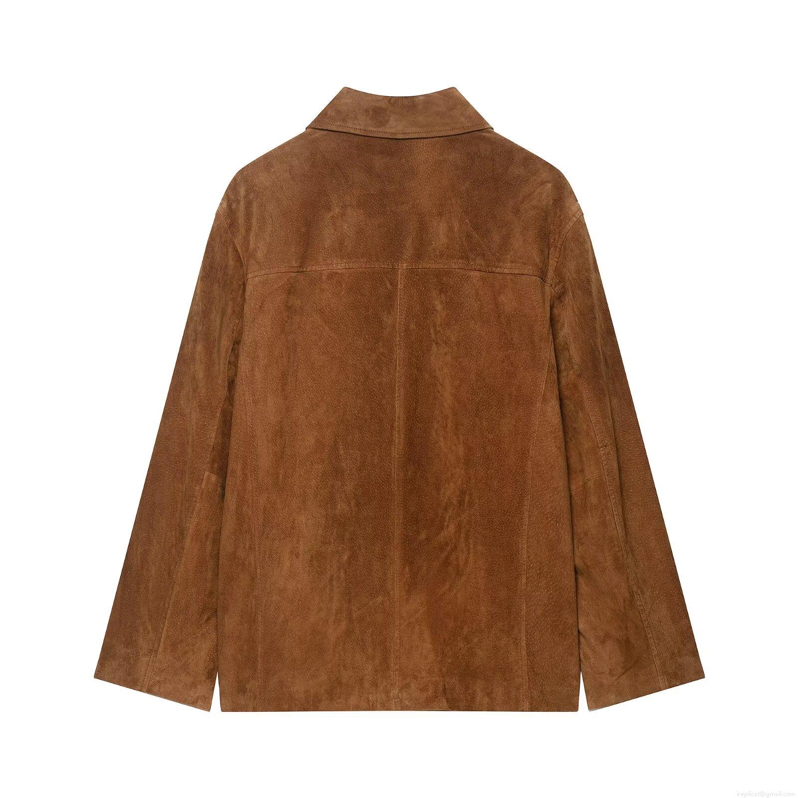 • Women Retro Faux Suede Leather Jacket Turn-Down Collar Single Breasted Short Coat With Patch Pockets Solid Color Long Sleeve Outerwear For Women Spring Autumn Casual Streetwear