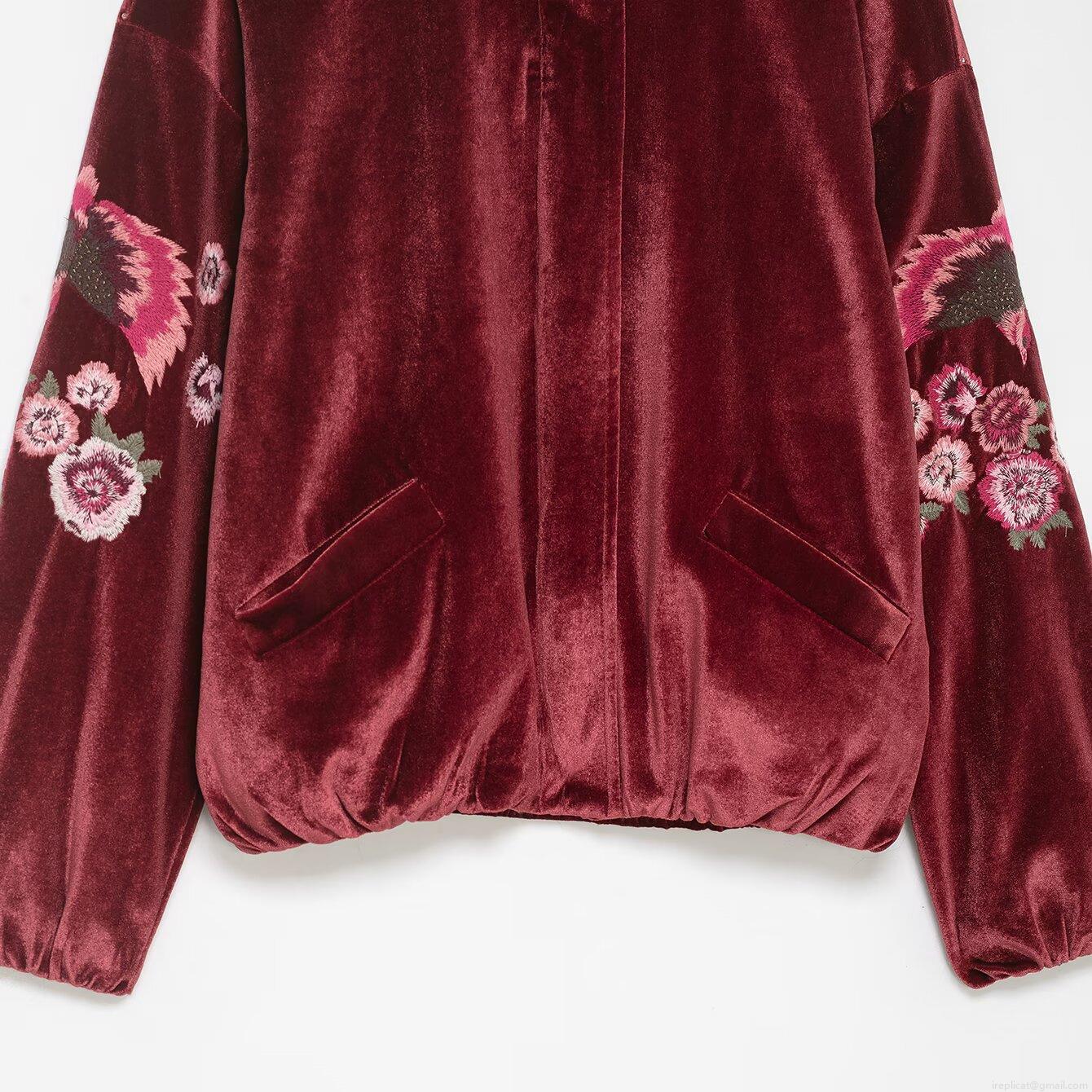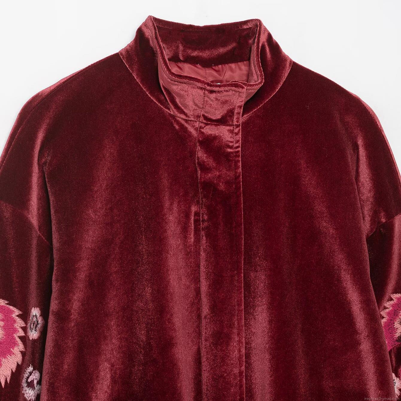 • Women Retro Velvet Stand Collar Jacket Elegant Floral Phoenix Embroidered Loose Fit Zip Up Long Sleeve Outerwear Warm Casual Winter Coat