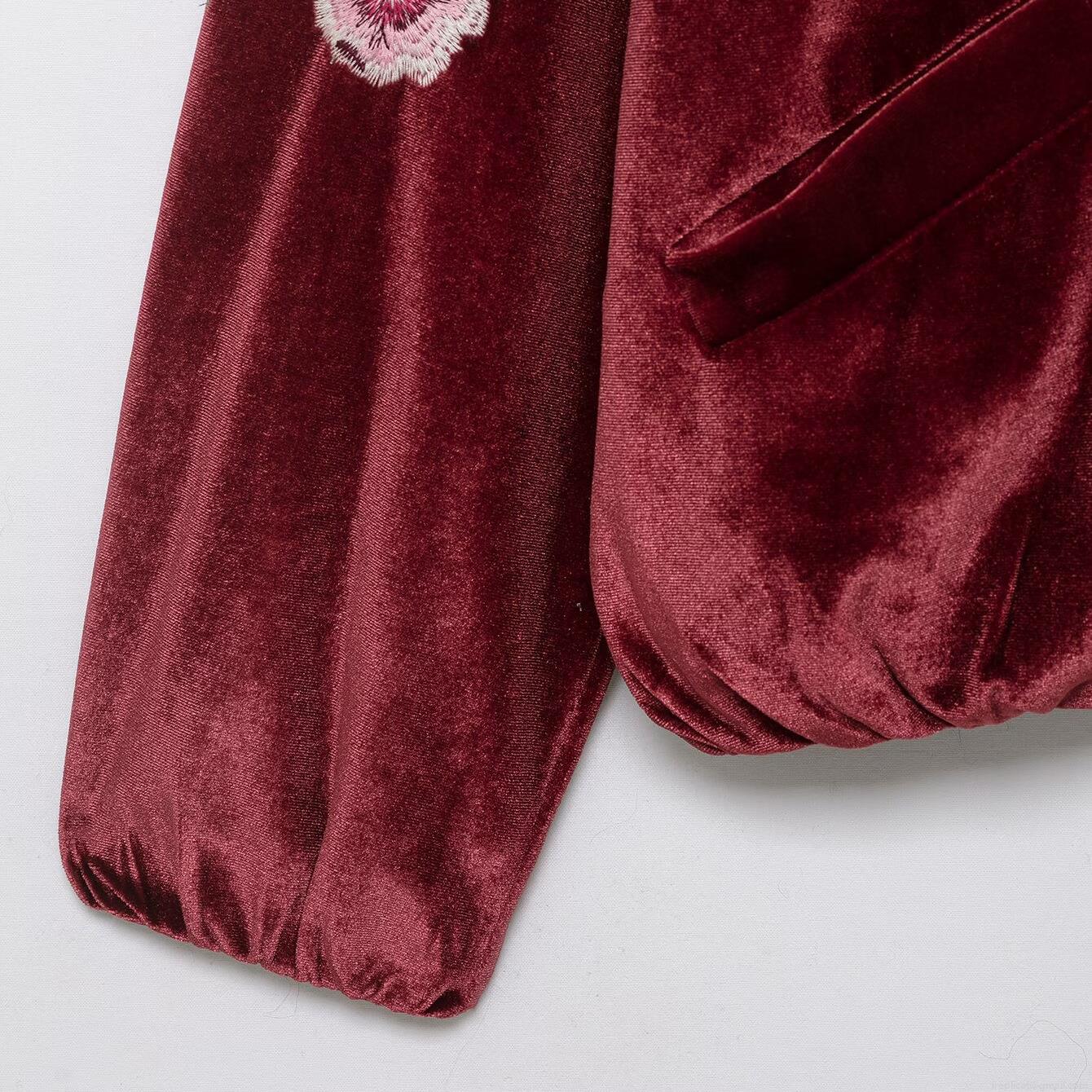 Phoenix, Embroidery, Flowers, Velvet, Stand-up Collar