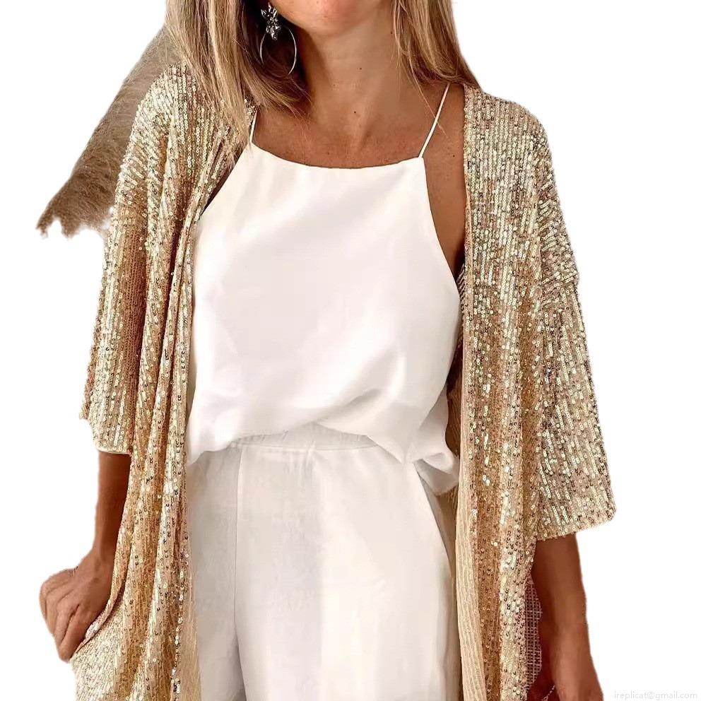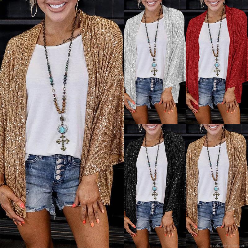 • Women Sequin Open Front Cardigan Glitter Long Sleeve Mesh Jacket Oversized Sparkly Casual Outerwear For Evening Party Clubwear Ladies Fashion Top