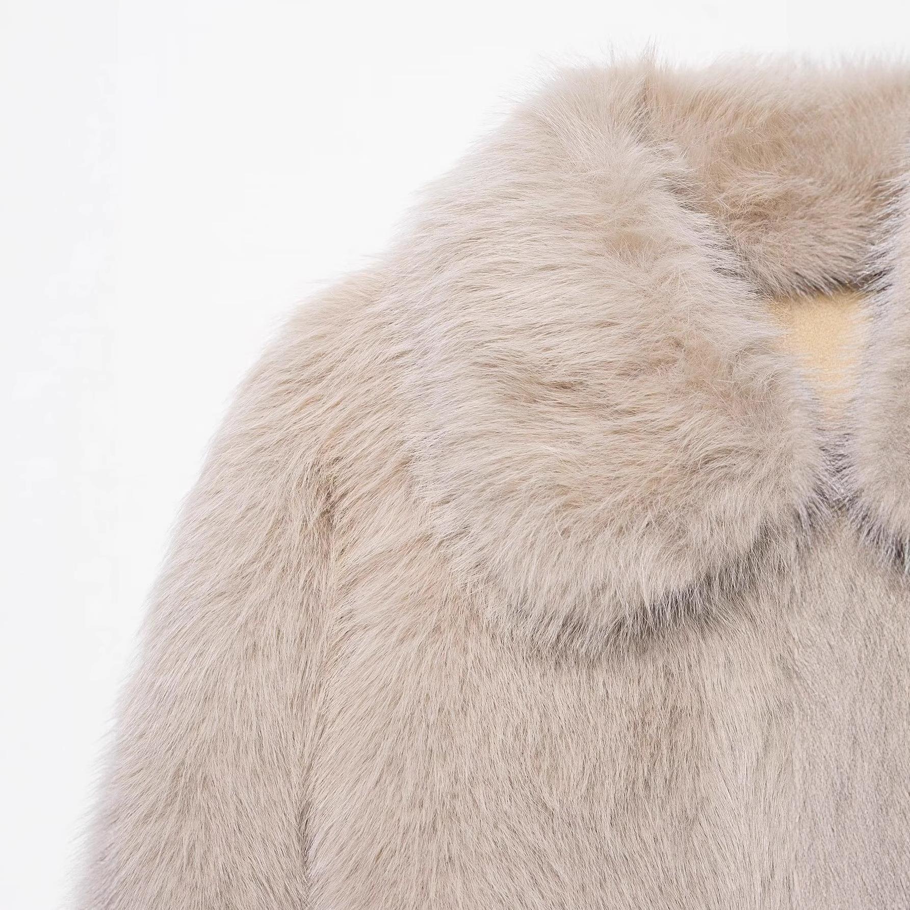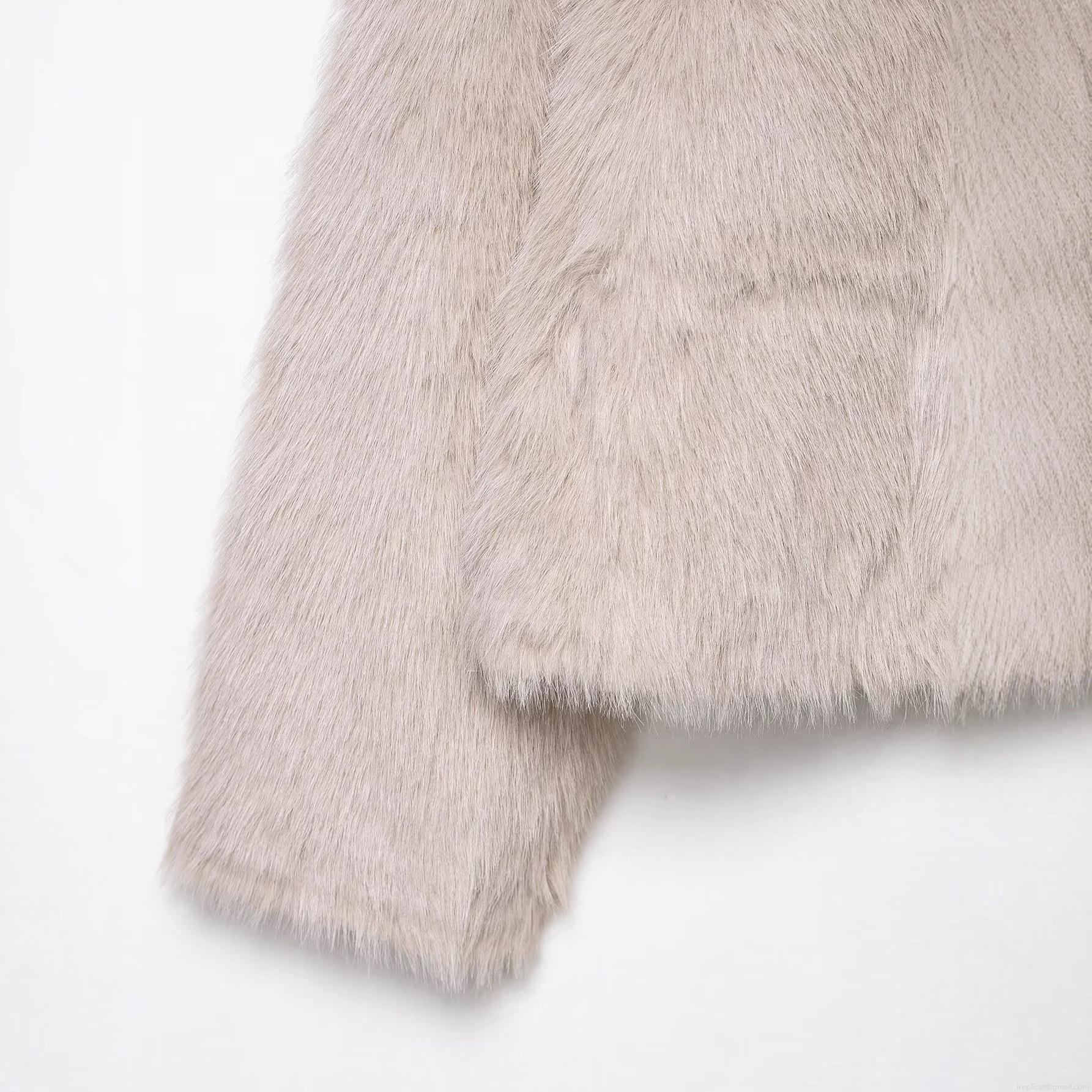 • Women Short Faux Fur Jacket Winter Warm Lapel Zipper Coat Elegant Solid Color Long Sleeve Outwear For Women Autumn Winter Fashion Casual Plush Jacket