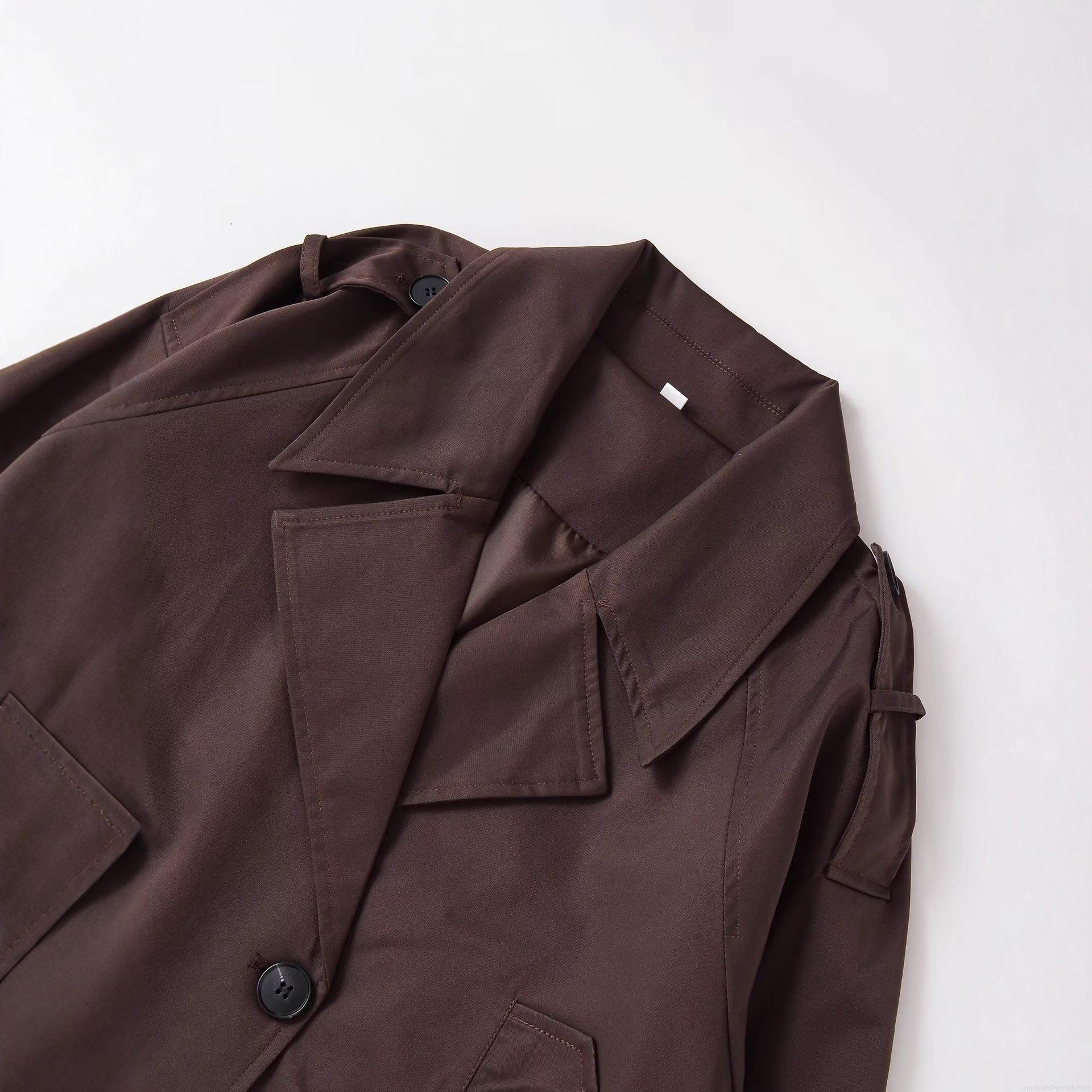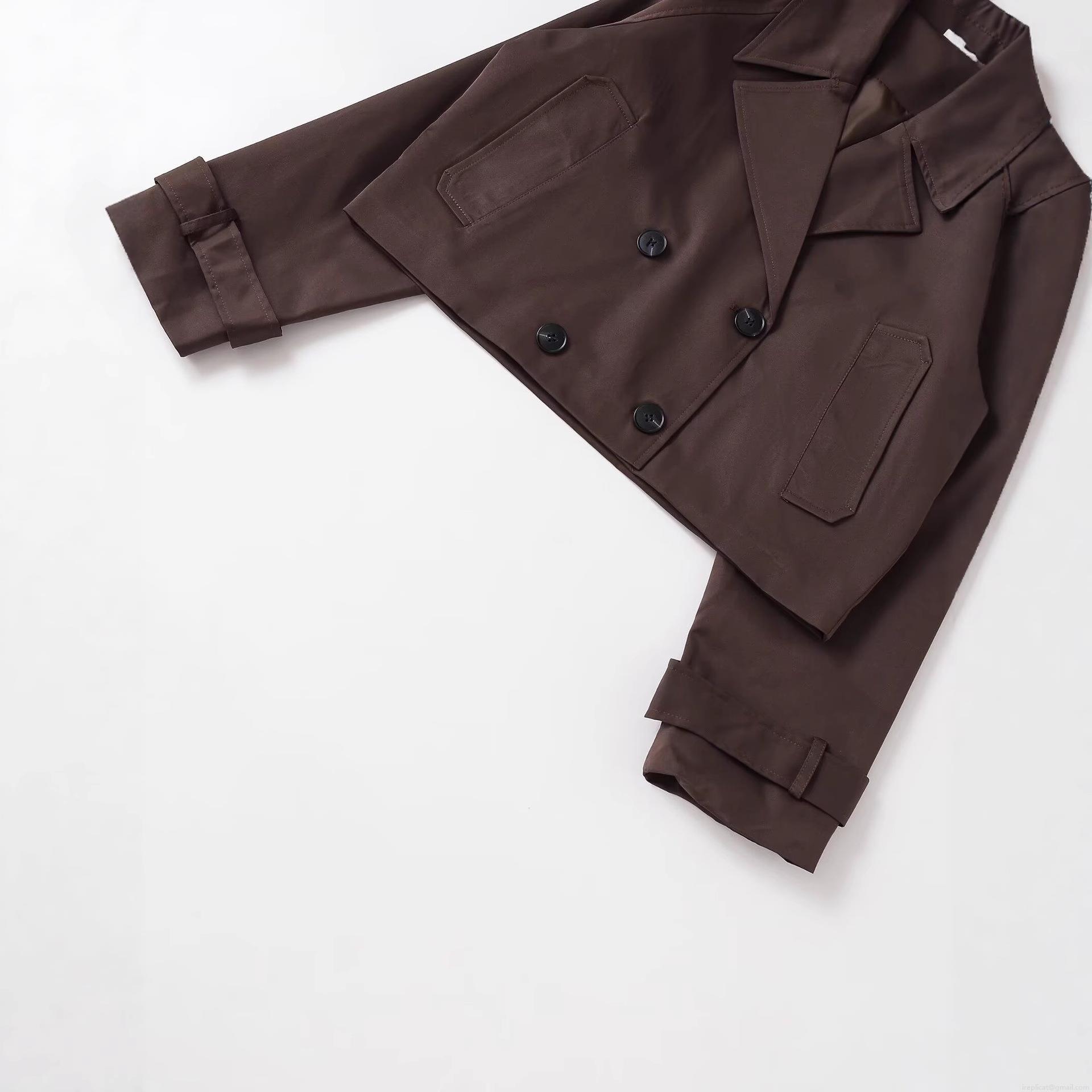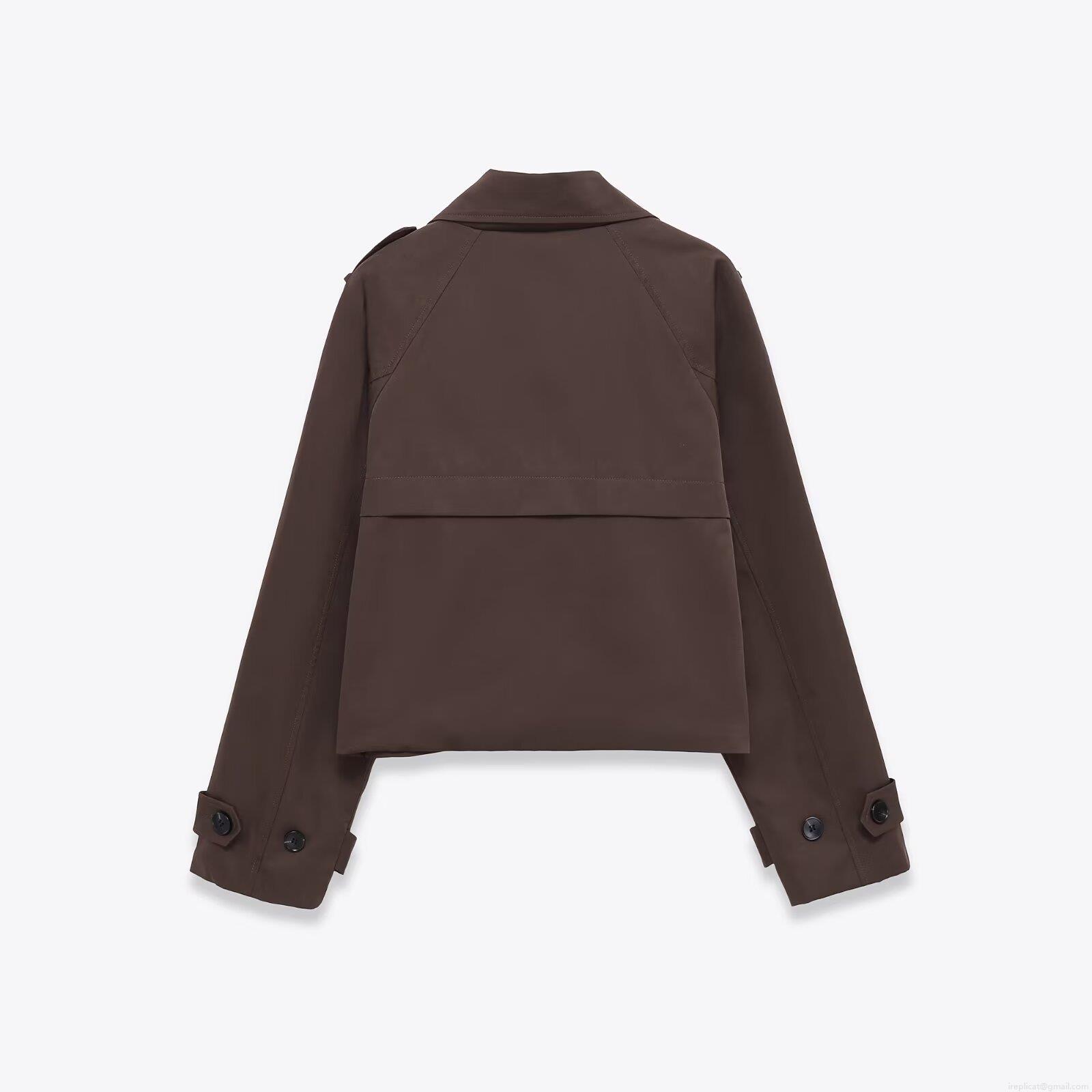 • Women Short Trench Coat Jacket 100% Polyester Twill Double Breasted Lapel With Epaulettes Vintage Workwear Style Elegant Casual Spring Autumn Outerwear For Ladies