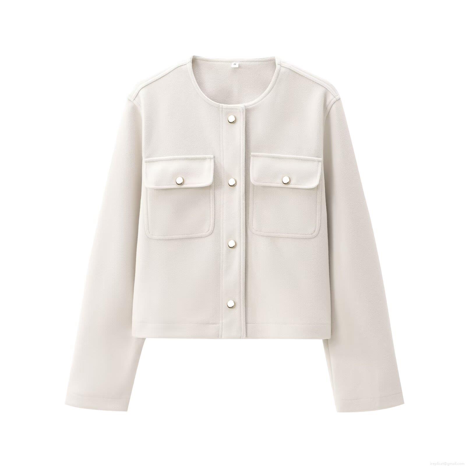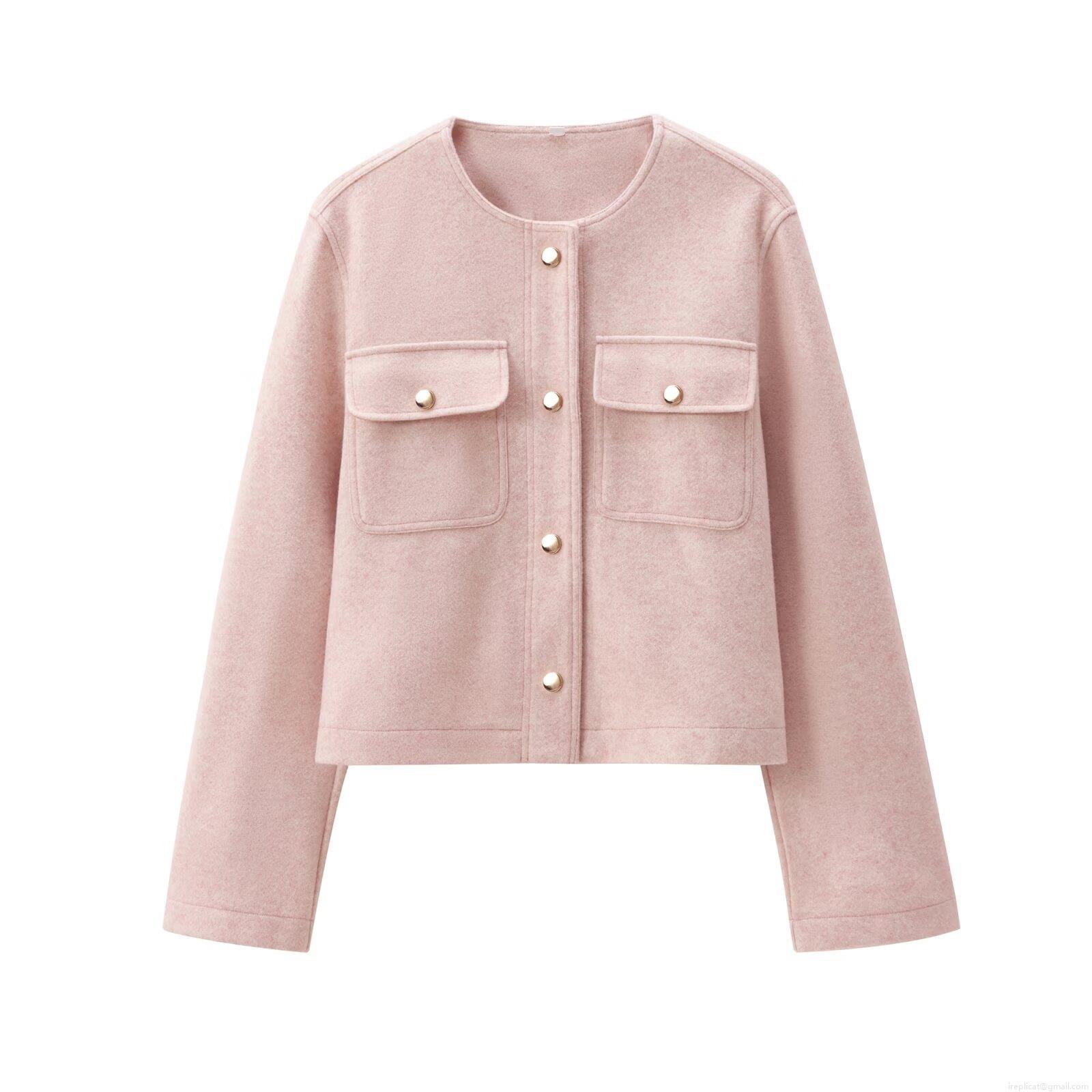• Women Soft Tweed Jacket Polyester Blend Gold Buttons Long Sleeve Round Neck Pocket Casual Party French Vintage Elegant Streetwear Outerwear