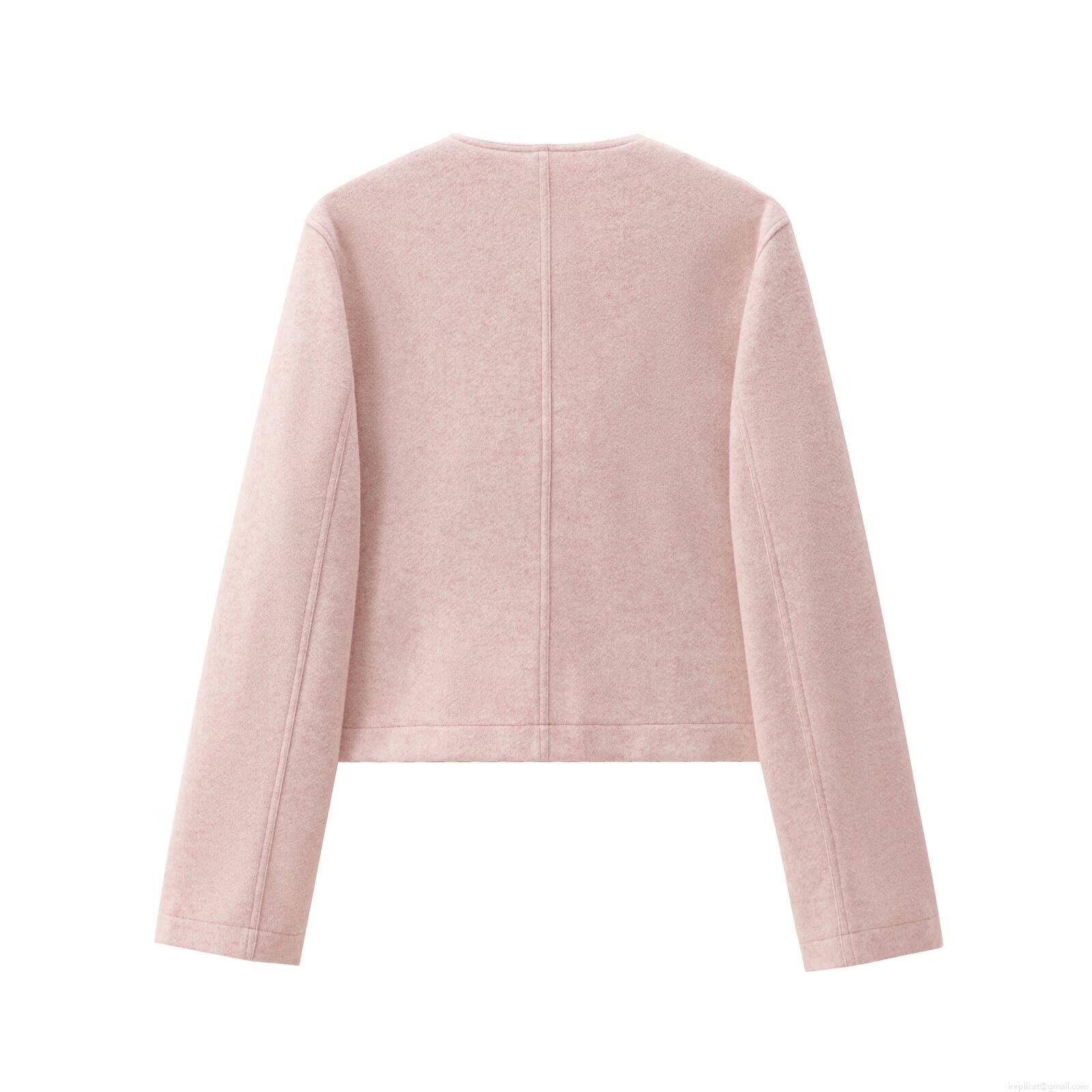 Women Soft Tweed Jacket Polyester Blend Gold Buttons Long Sleeve Round Neck Pocket Casual Party French Vintage Elegant Streetwear Outerwear
