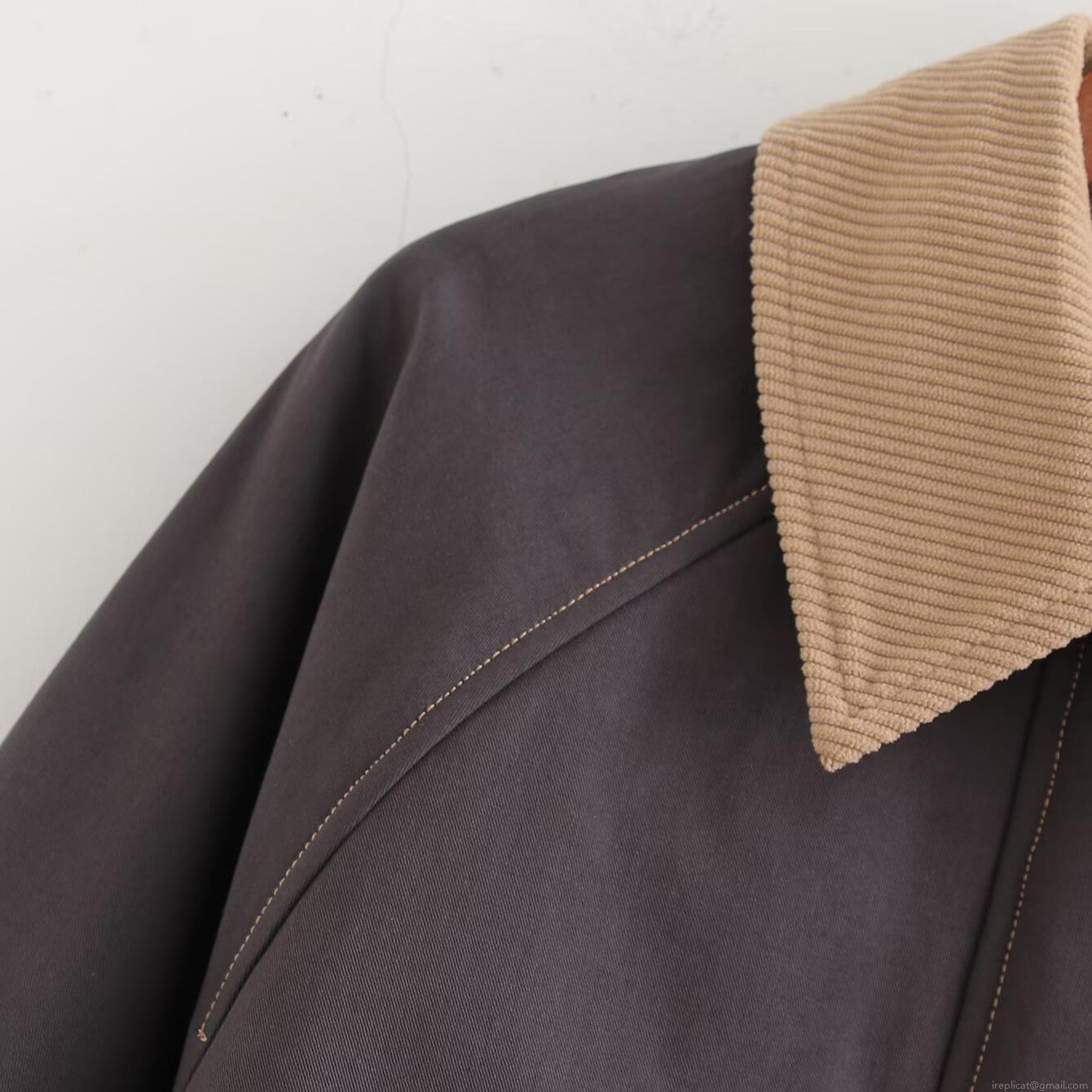 • Women Splicing Workwear Jacket Corduroy Lapel Polyester Long Sleeve Button Up Coat Casual Autumn Loose Fit Outerwear With Pockets
