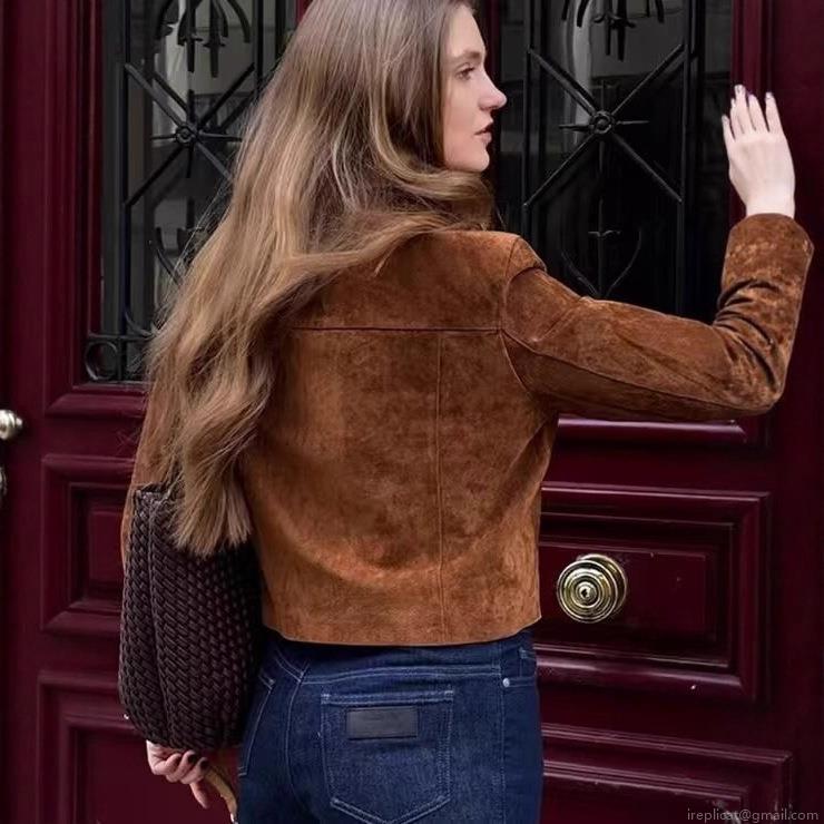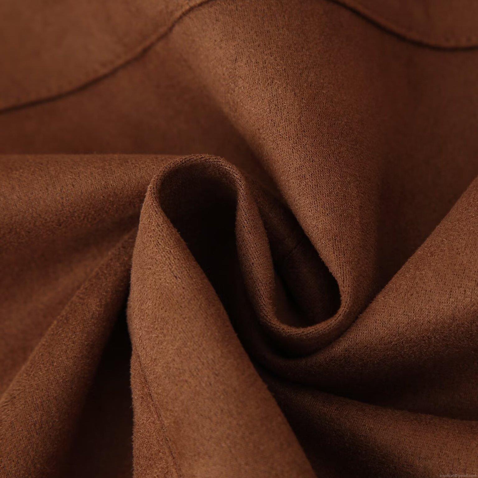 Women Suede Biker Jacket Vintage Dark Brown Cropped Moto Coat With Metal Zippers Streetwear Fall Winter Faux Suede Short Outwear
