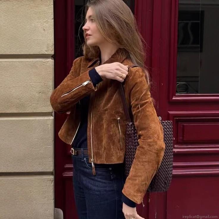 • Women Suede Biker Jacket Vintage Dark Brown Cropped Moto Coat With Metal Zippers Streetwear Fall Winter Faux Suede Short Outwear