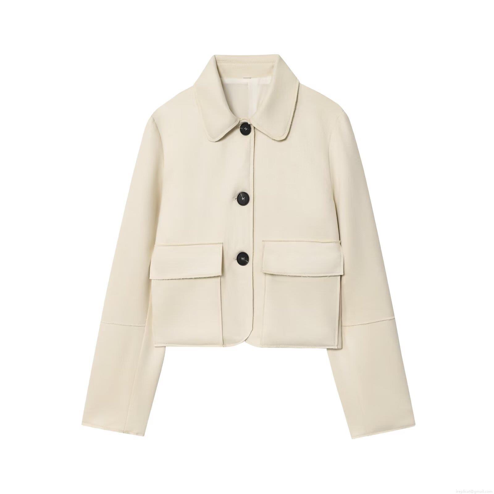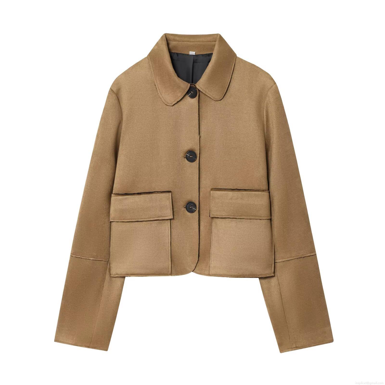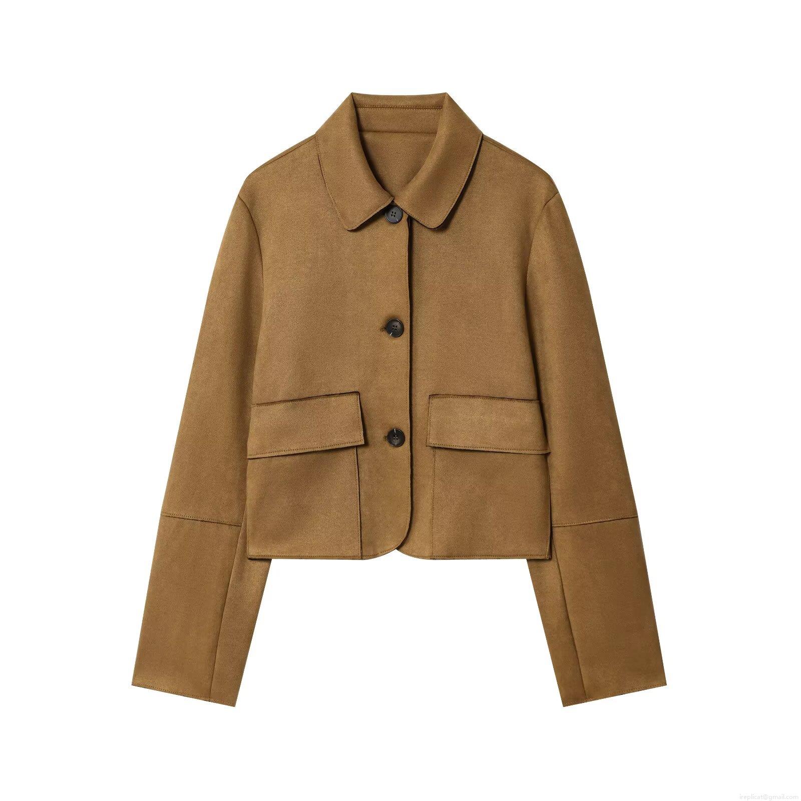 • Women Suede Texture Lapel Long Sleeve Short Jacket Single Breasted Solid Color Coat With Pockets Fashion Streetwear Outerwear For Autumn Winter