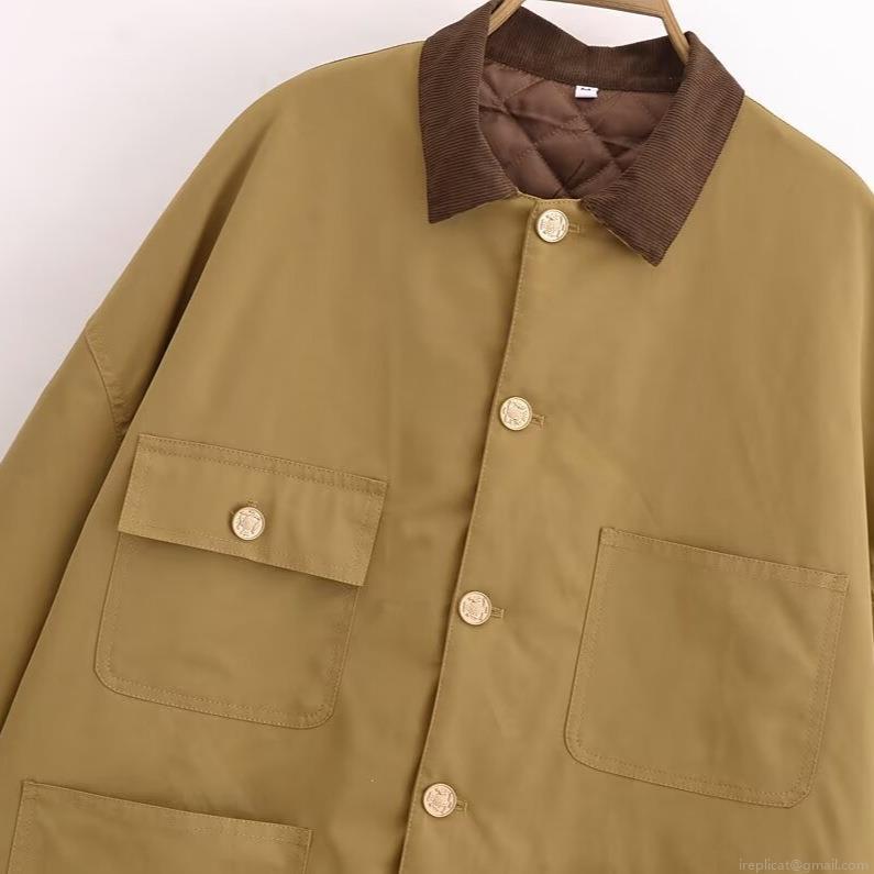 • Women Vintage American Style Utility Jacket Contrast Corduroy Lapel Quilted Lining Loose Fit Polyester Outerwear With Four Pockets For Autumn Winter